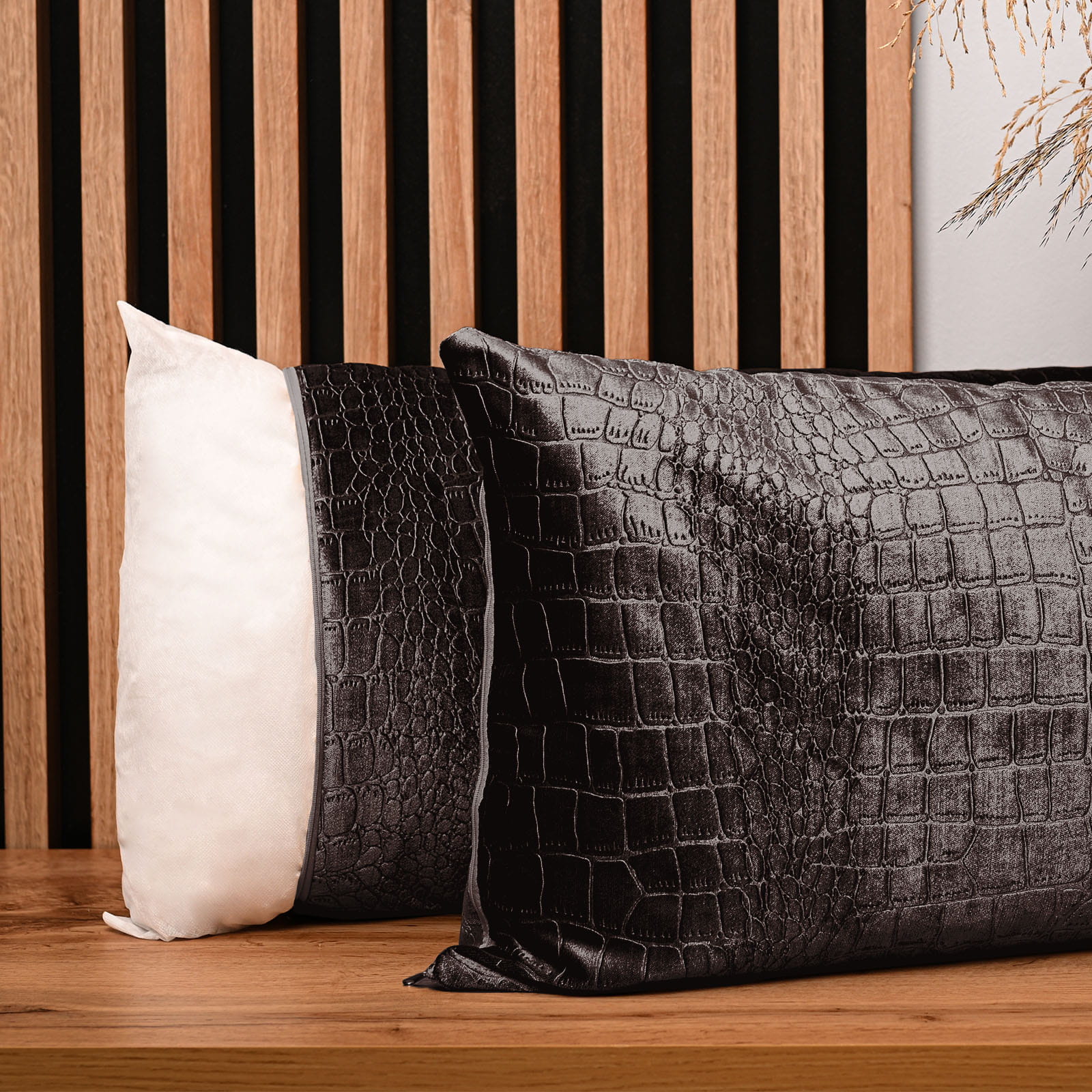 Dekoracyjna poszewka na poduszkę 40x80 cm w kolorze brązowym z tkaniny welurowej z wytłaczanym wzorem “skóra krokodyla”