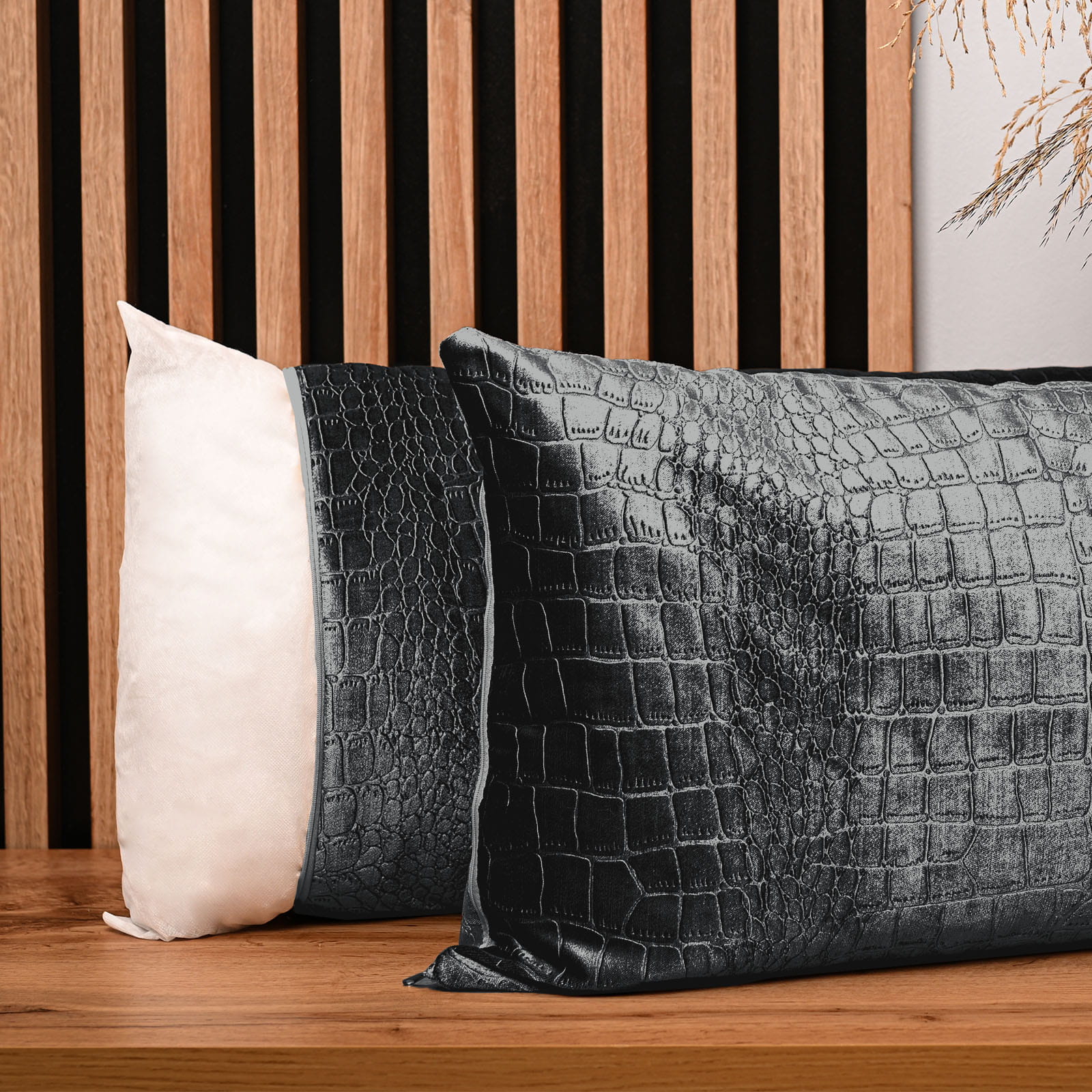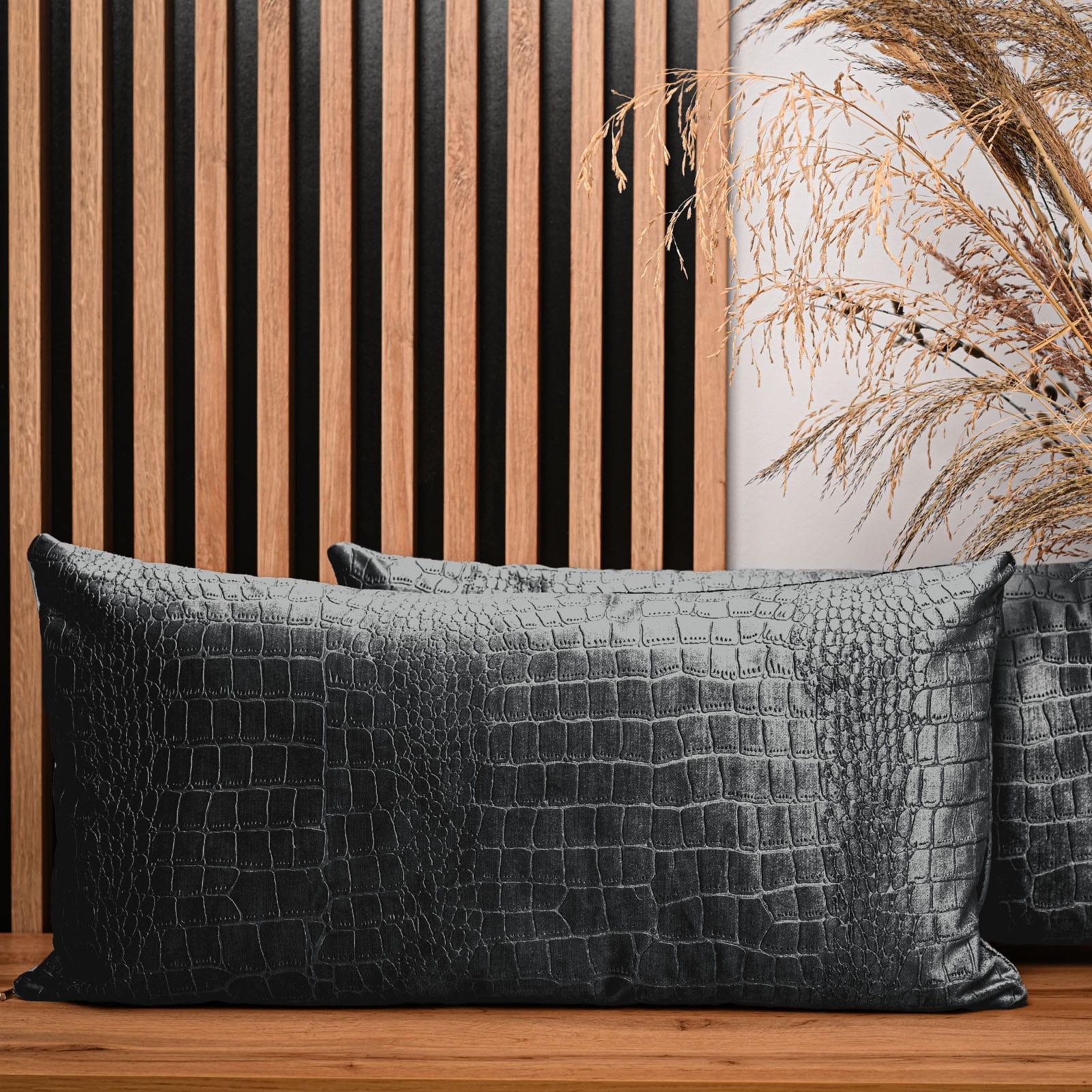 Dekoracyjna poszewka na poduszkę 40x80 cm w kolorze ciemnoszarym z tkaniny welurowej z wytłaczanym wzorem “skóra krokodyla”