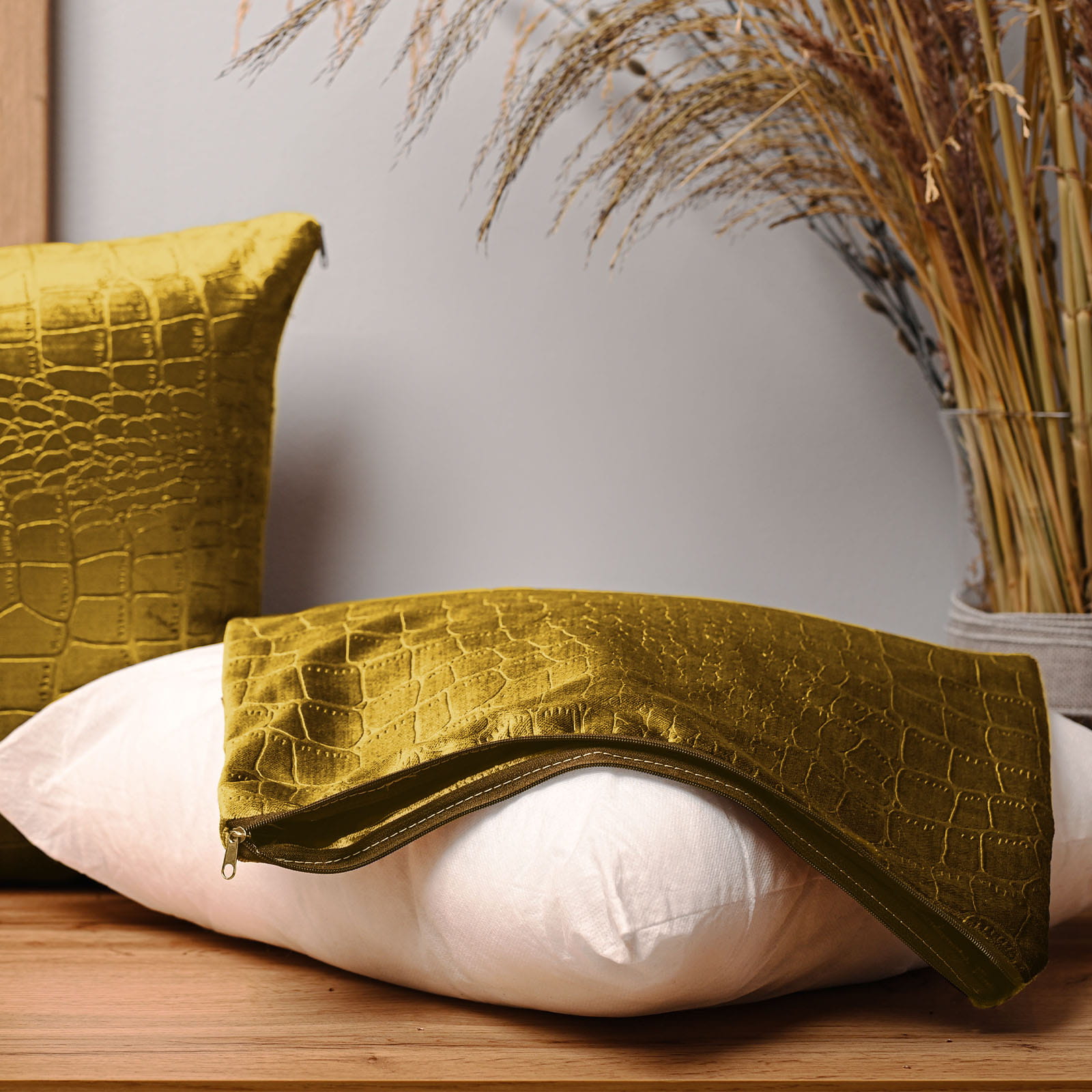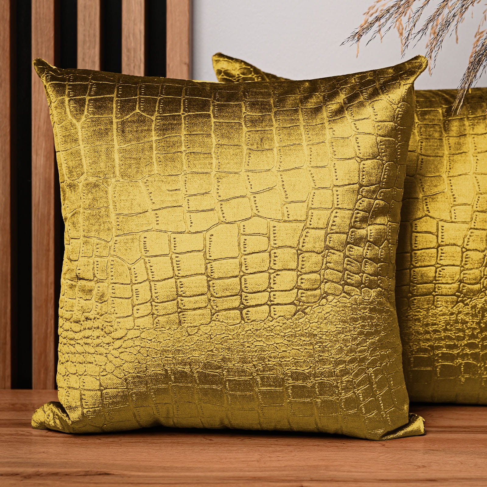 Dekoracyjna poszewka na poduszkę 50x50 cm w kolorze złotym z tkaniny welurowej z wytłaczanym wzorem “skóra krokodyla”