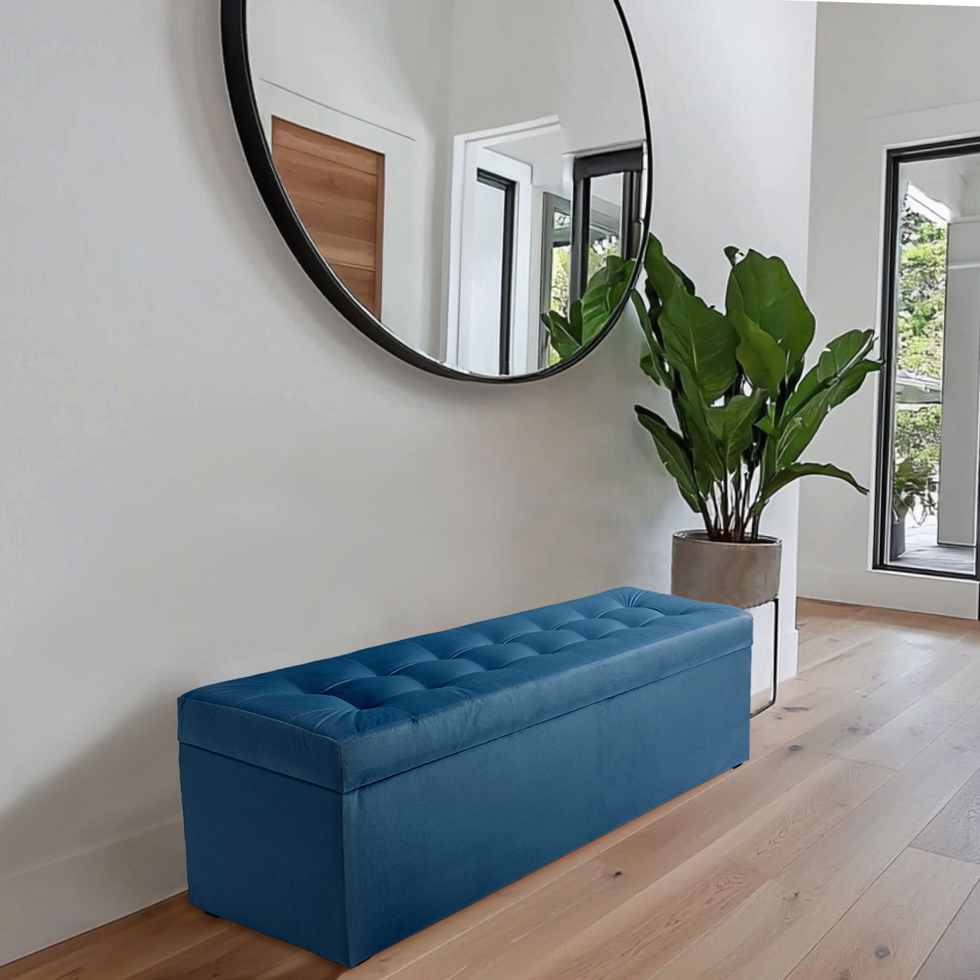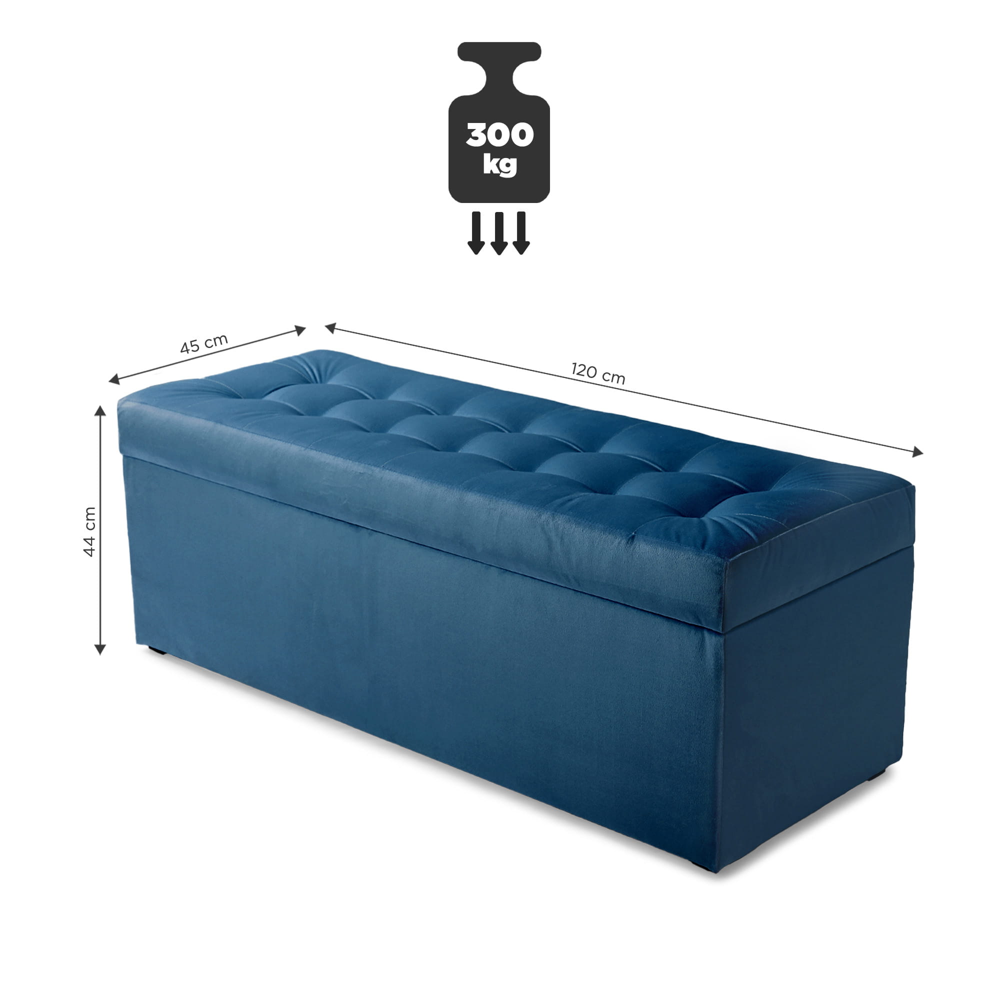 Nowoczesna otwierana pufa 45x120cm w kolorze lazurowym