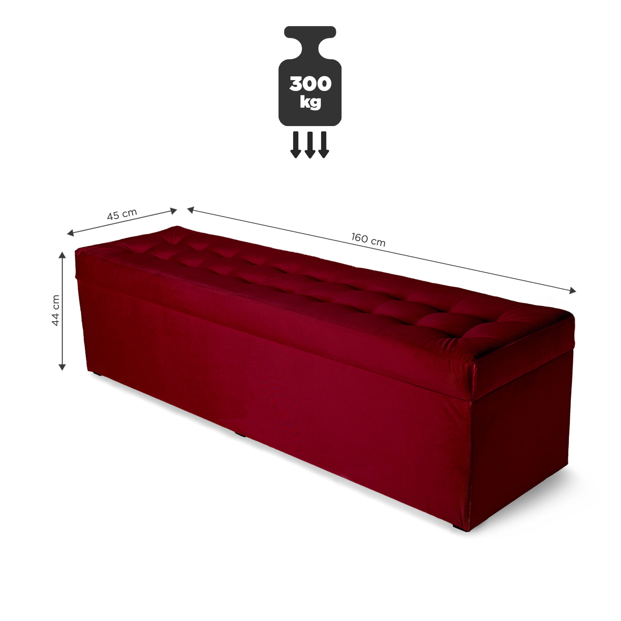 Nowoczesna otwierana pufa 45x160 cm w kolorze bordowym