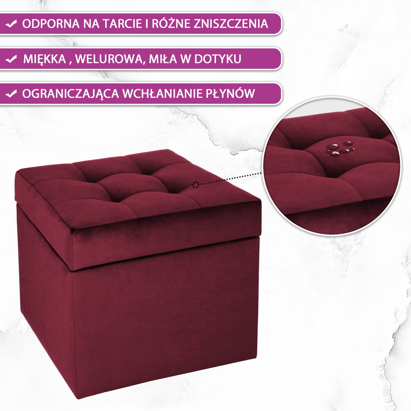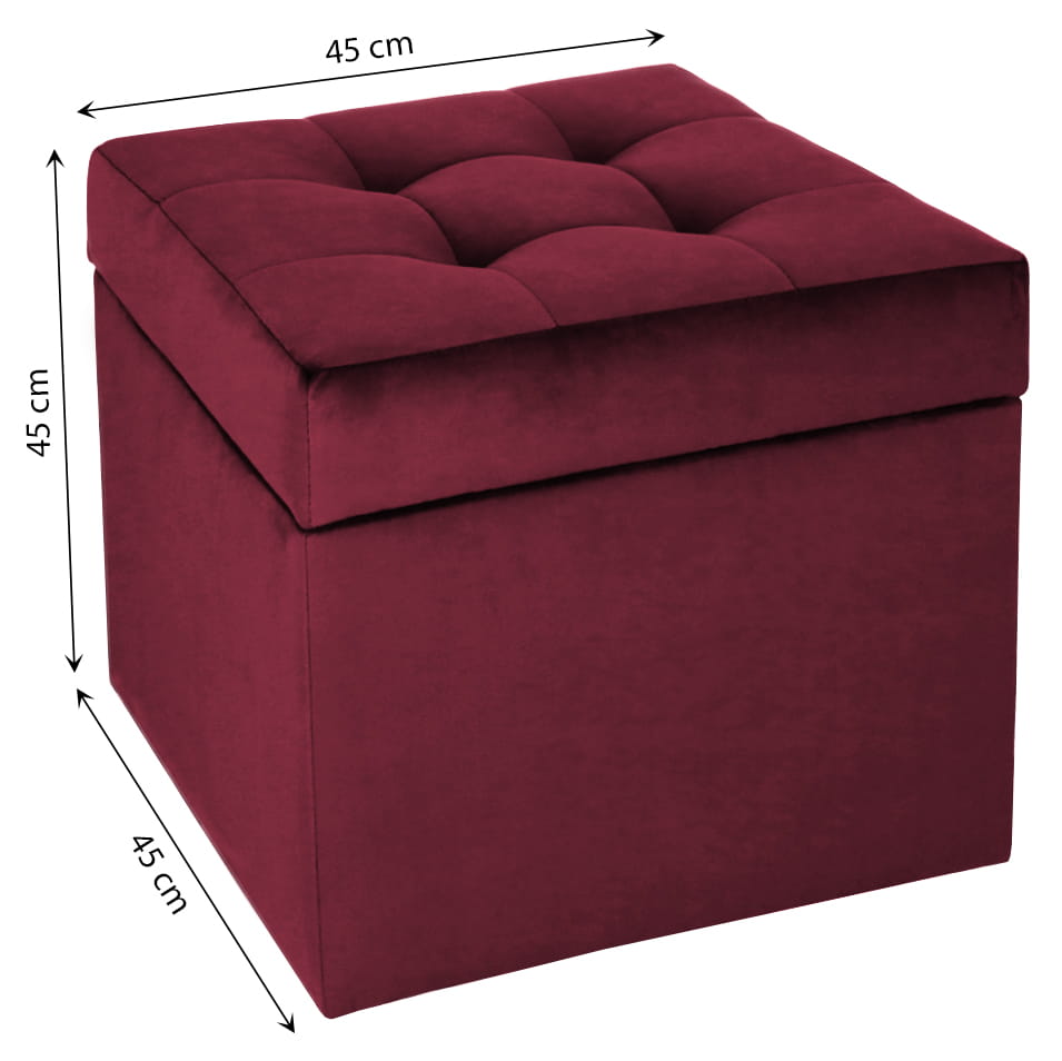 Nowoczesna otwierana pufa 45x45 cm w kolorze bordowym