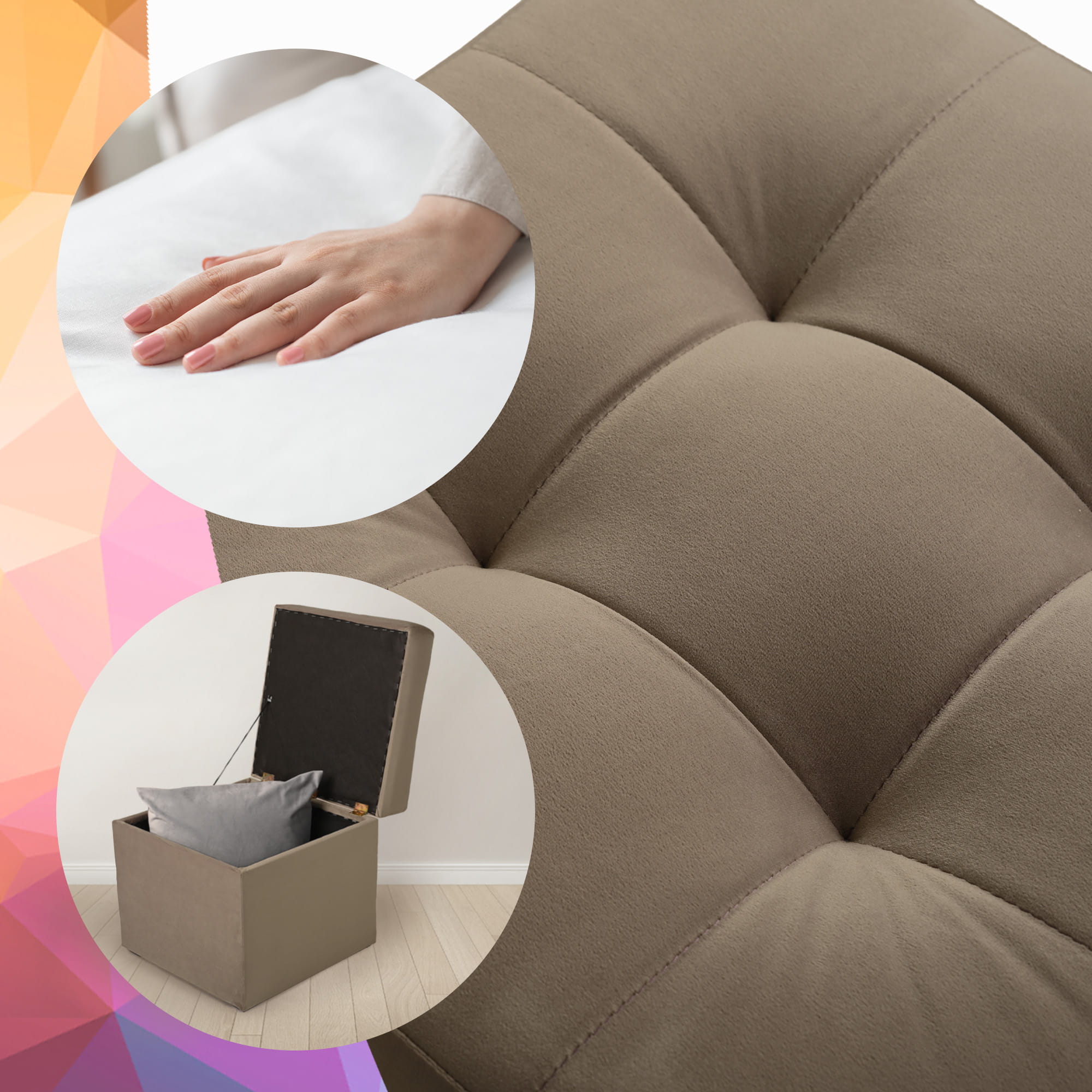 Nowoczesna otwierana pufa 45x45 cm w kolorze jasnobrązowym