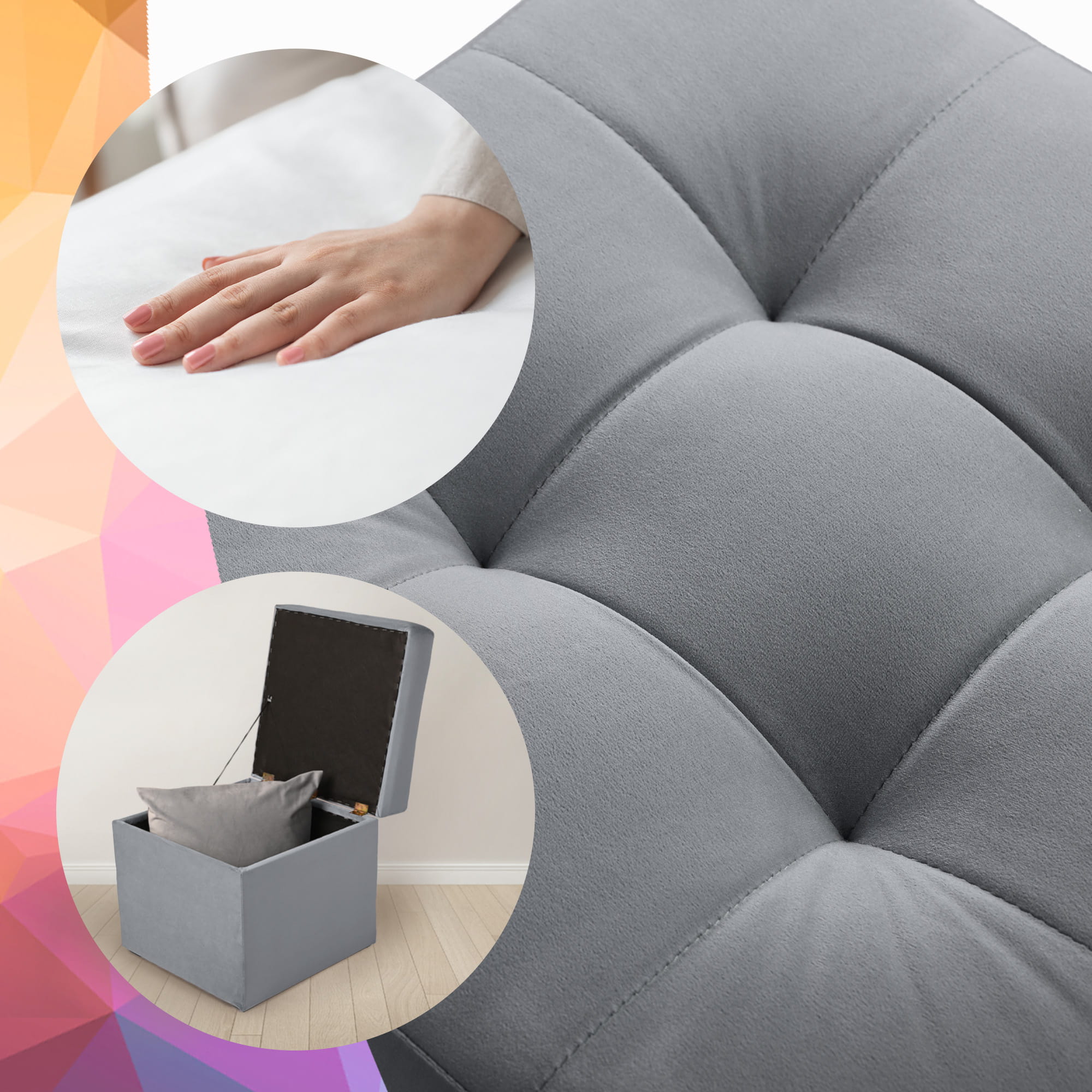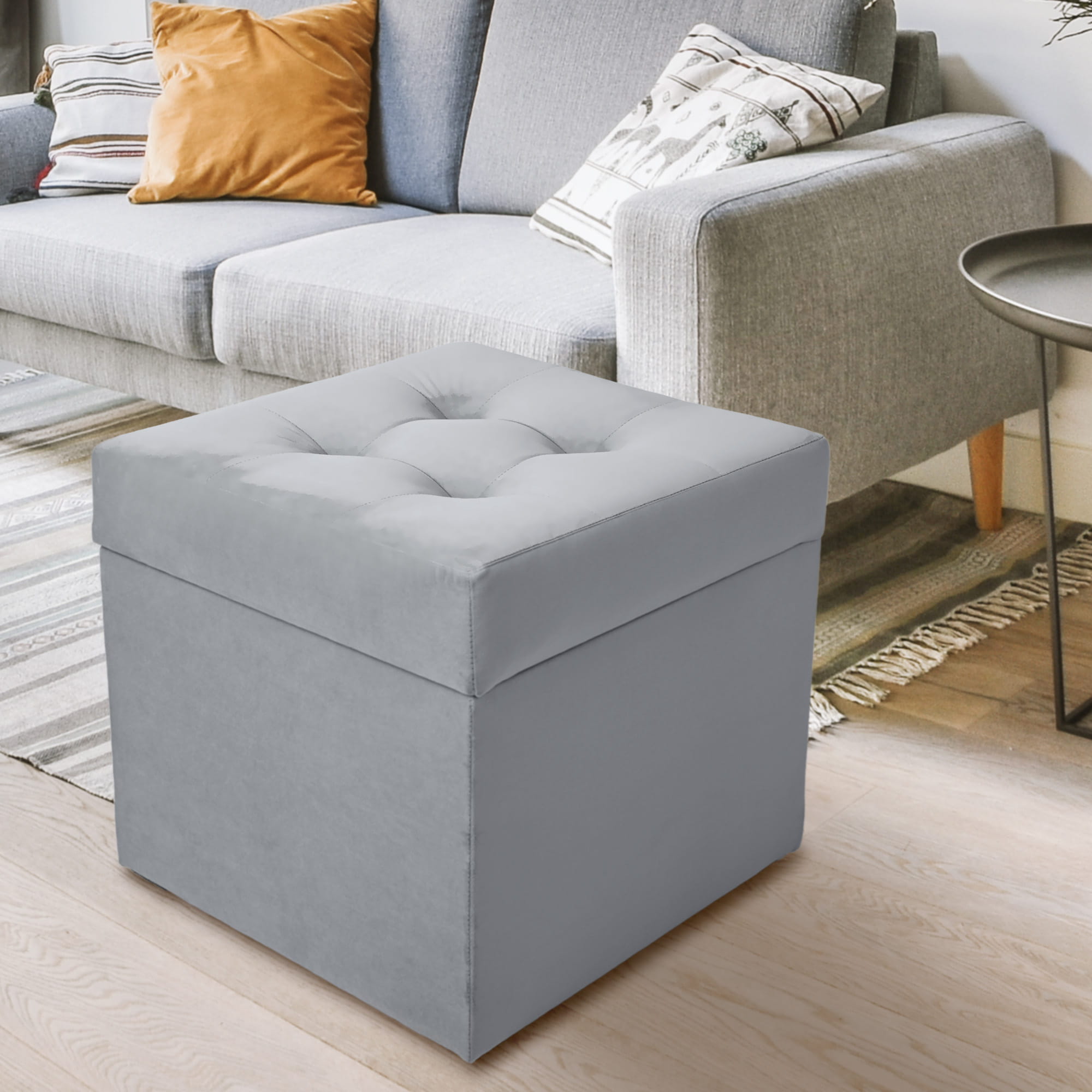 Nowoczesna pufa ze schowkiem 45x45 cm - jasnoszara