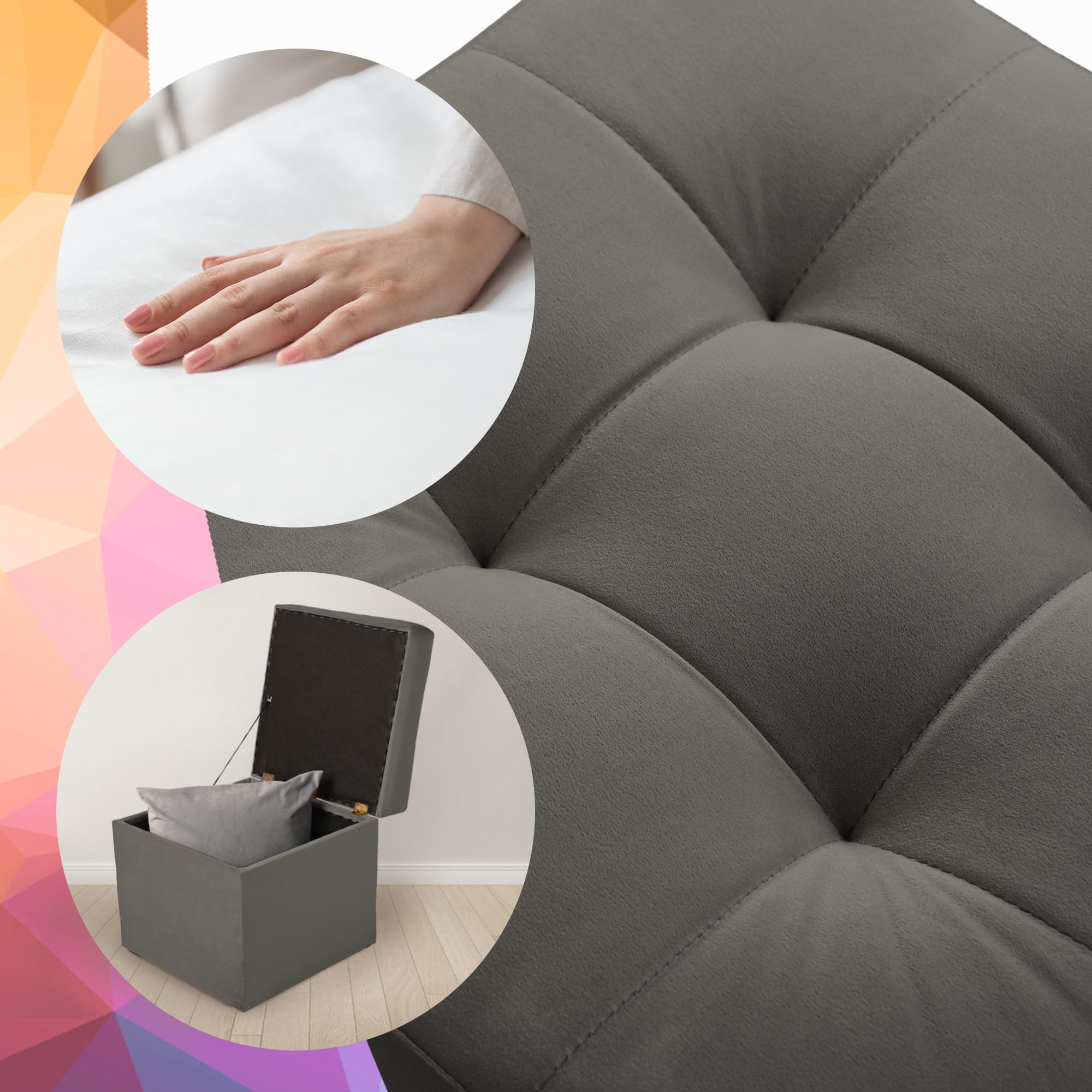 Nowoczesna otwierana pufa 45x45 w kolorze ciemno siwym