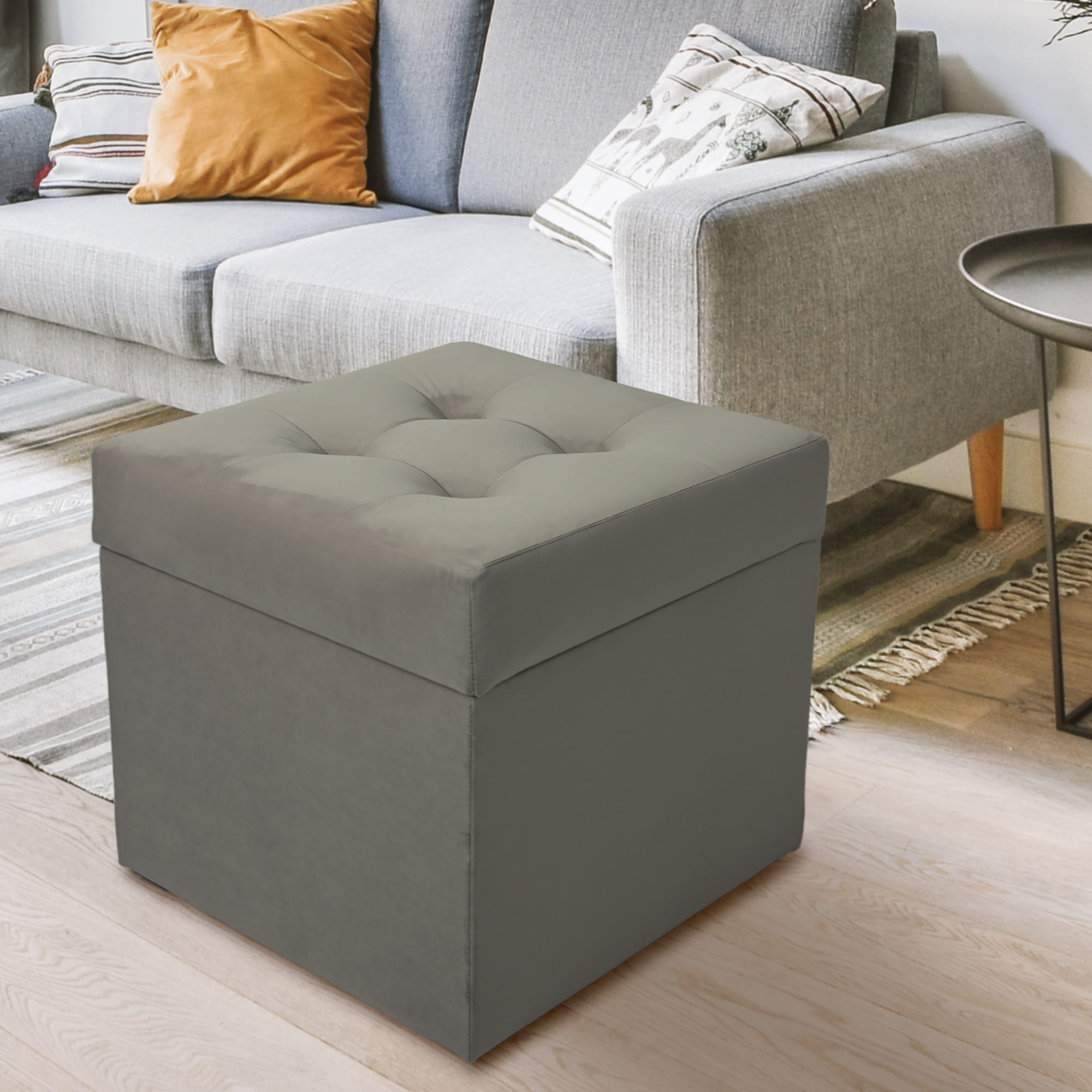Nowoczesna pufa ze schowkiem 45x45 cm - ciemno-siwy