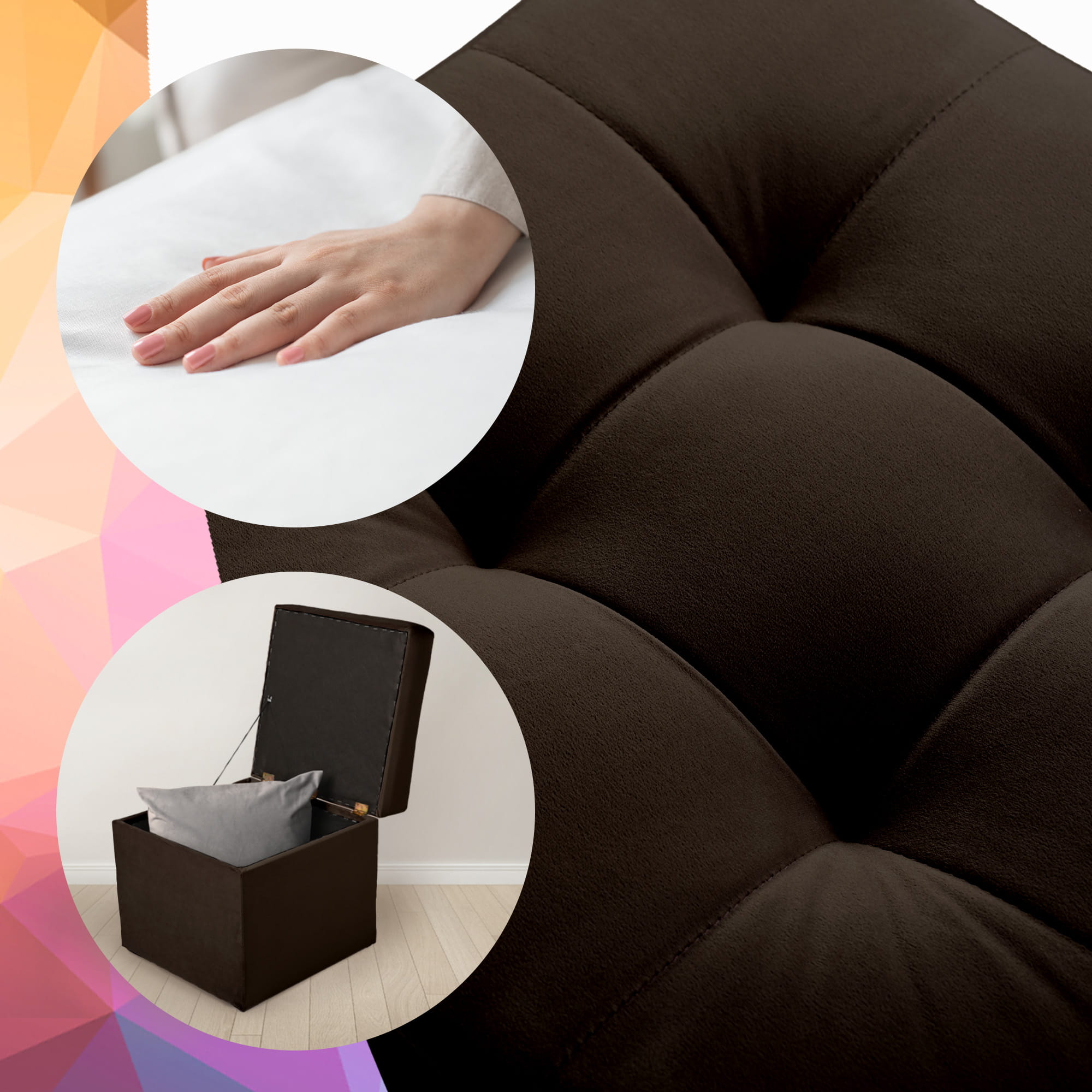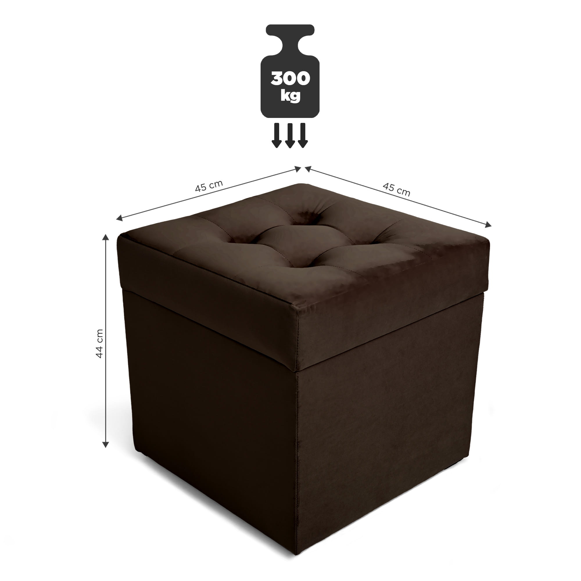 Nowoczesna pufa ze schowkiem 45x45 cm - ciemno brązowa