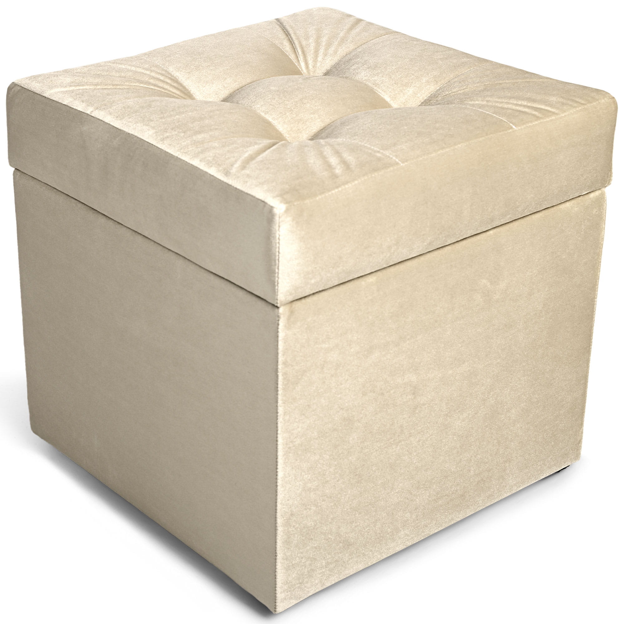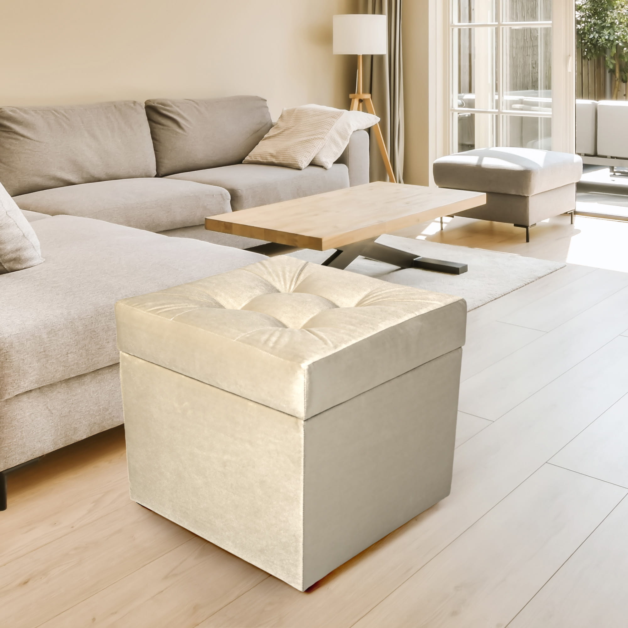 Nowoczesna otwierana pufa 45x45 w kolorze kremowym