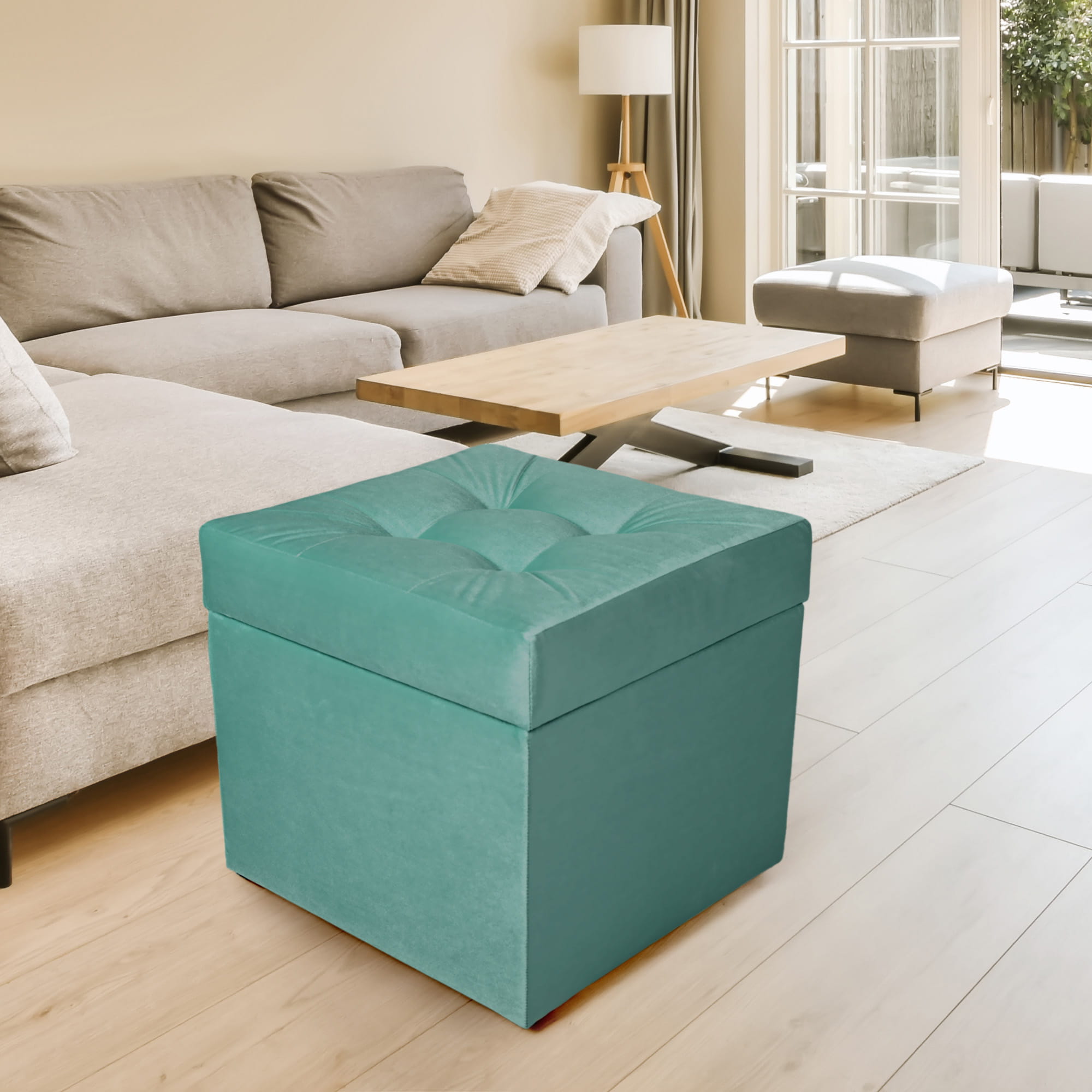 Nowoczesna pufa ze schowkiem 45x45 cm - turkus