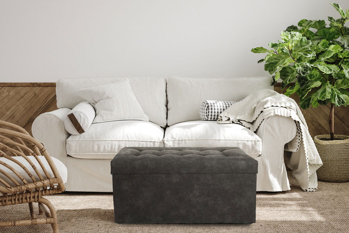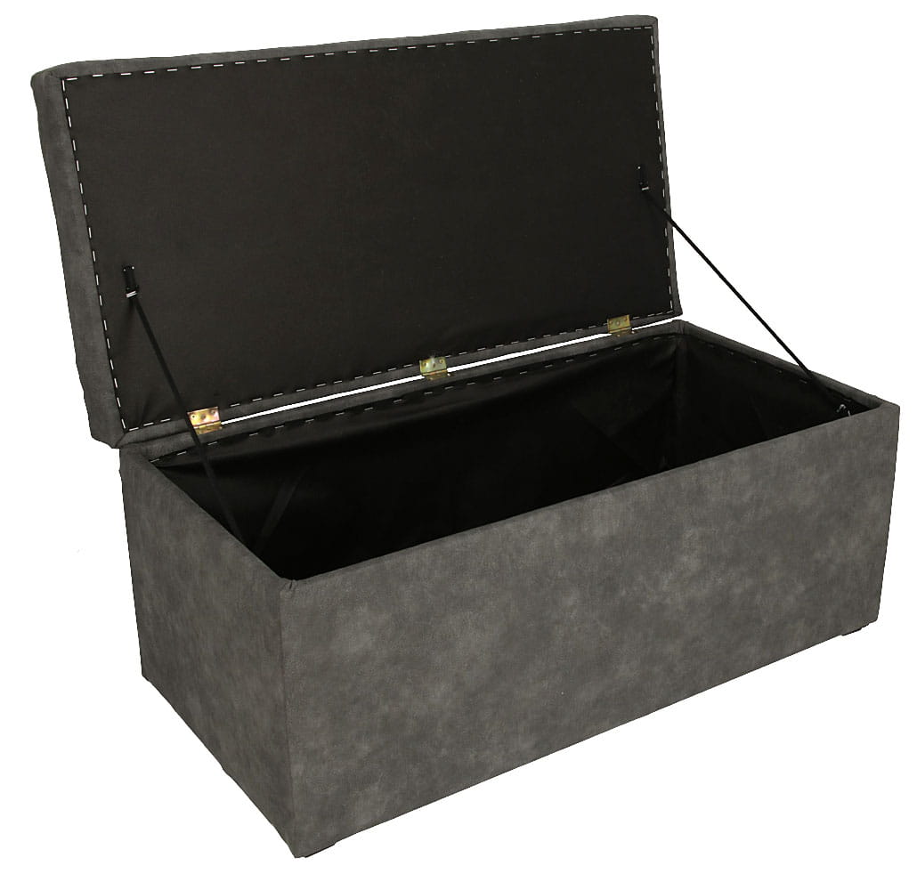 Nowoczesna otwierana pufa w kolorze grafitowym.