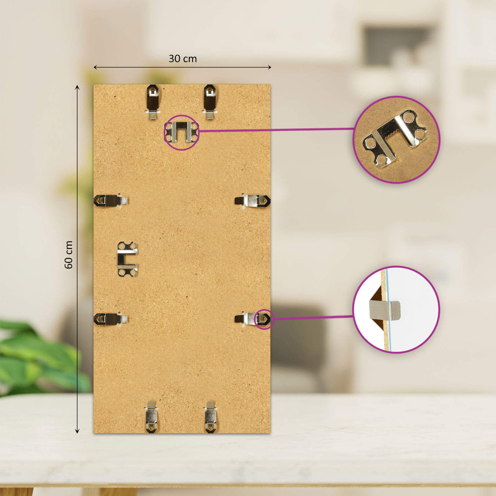 Dodatkowo każdy otwór przeznaczony do montażu klipsa, jest starannie wycięty a jego krawędzie gładkie i równe. Zapewnia to duży komfort użytkowania oraz estetyczny wygląd. Każdy otwór jest dopasowany do wielkości klipsa dzięki czemu PLEXI i płyta HDF nie przesuwają się. Otwory mają podłużny a nie okrągły kształt co zapobiega ich uszkodzeniu.