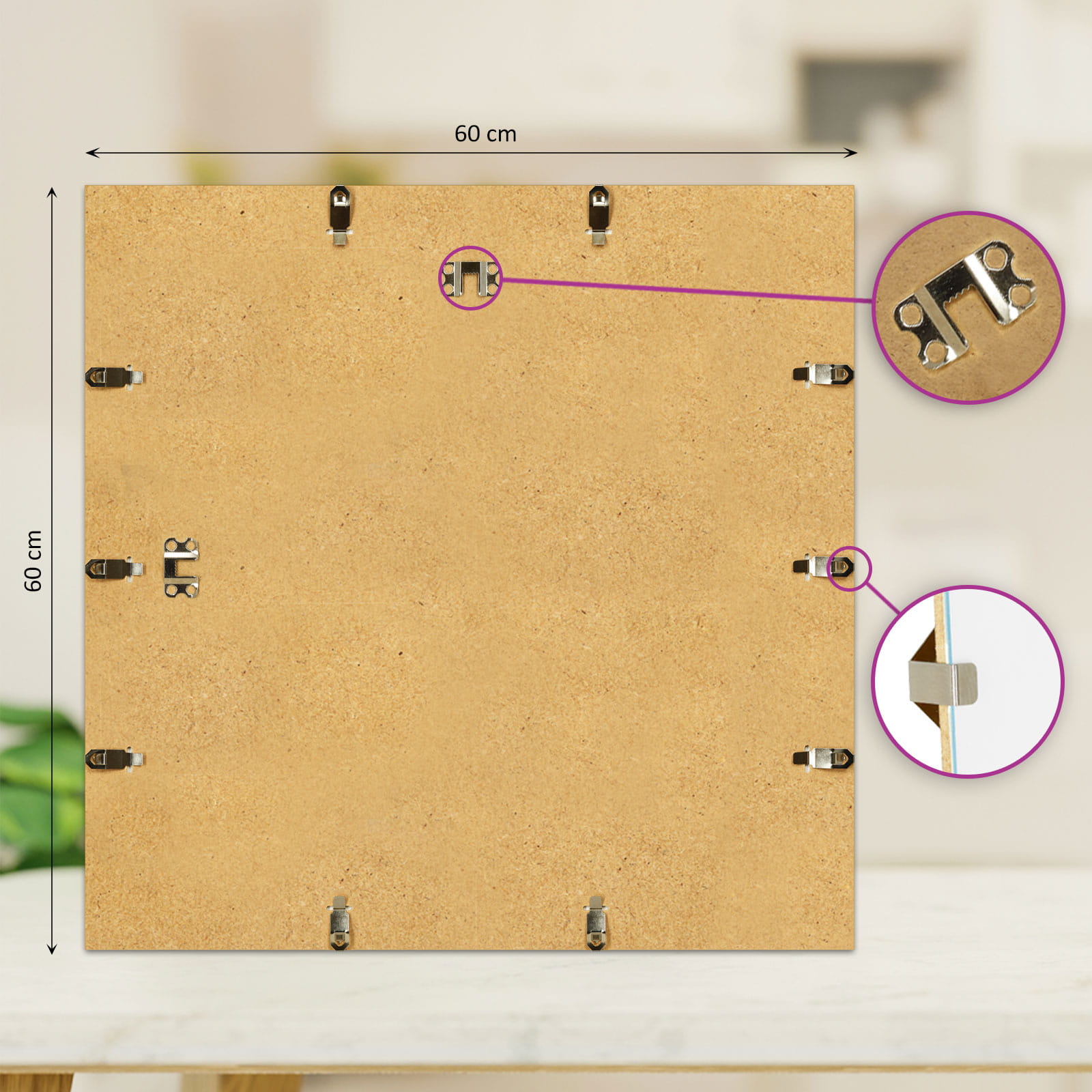 Do produkcji naszych antyram używamy jednej z najlepszych na rynku płyty HDF. Jest precyzyjnie wycięta, co sprawia, że jej krawędzie są równe i gładkie. Dzięki temu Antyrama idealnie prezentuje się na ścianie. Płyta HDF jest grubości 2,5 mm. Jest to zoptymalizowana grubość, która zapewnia trwałość i wytrzymałość antyramy oraz małą wagę.