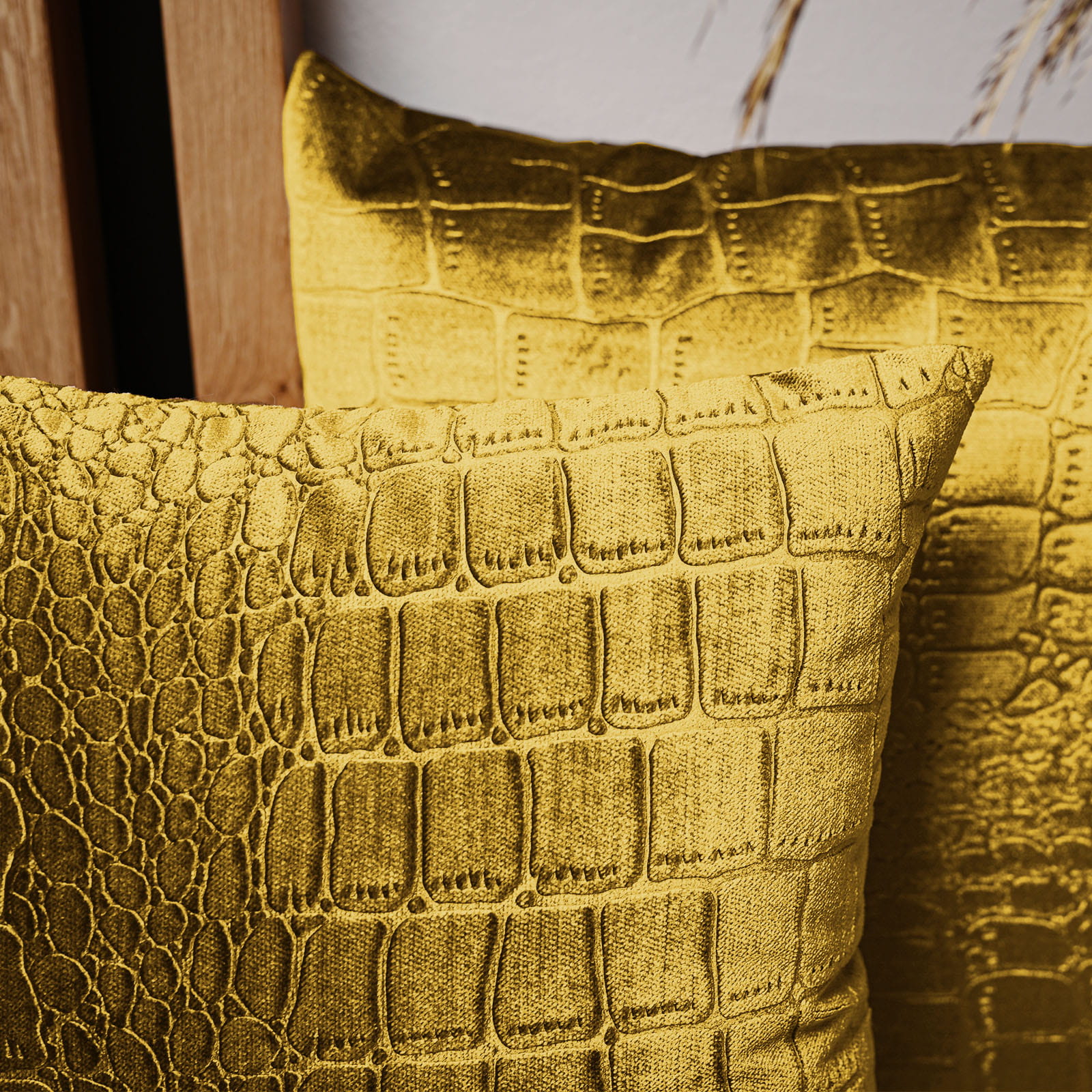 Dekoracyjna poszewka na poduszkę 30x30 cm w kolorze złotym z tkaniny welurowej z wytłaczanym wzorem “skóra krokodyla”