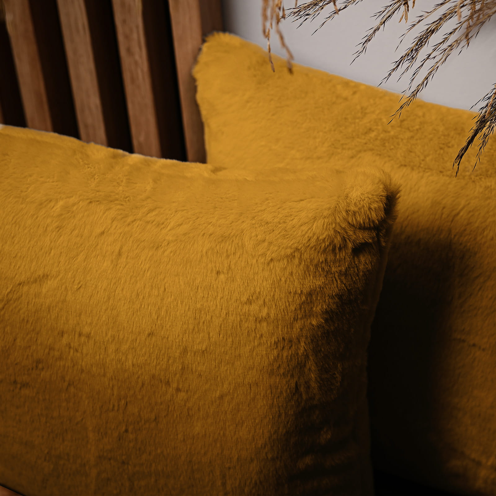 Dekoracyjna poszewka na poduszkę 30x30 cm w kolorze żółtym z imitacji futra