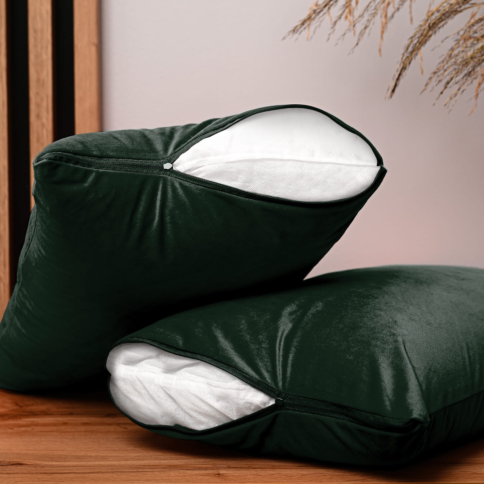 Dekoracyjna poszewka na poduszkę 30x50 cm w kolorze ciemnozielonym z tkaniny welurowej