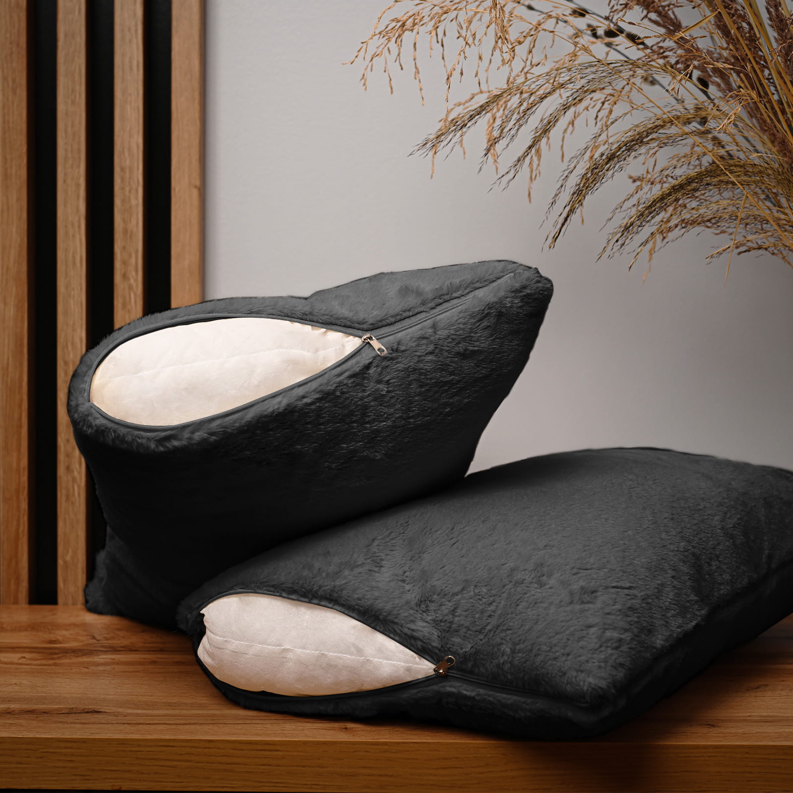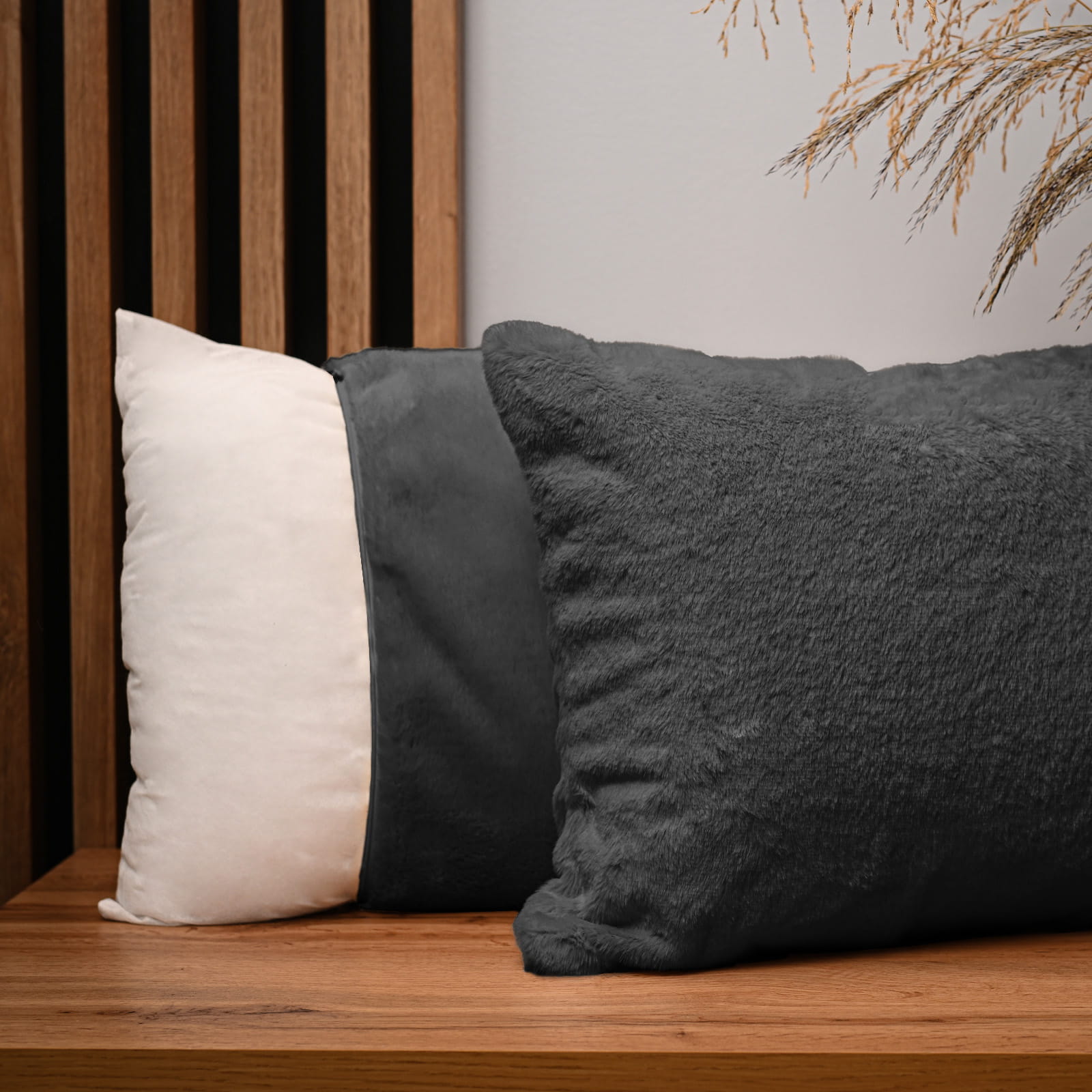Dekoracyjna poszewka na poduszkę 30x50 cm w kolorze grafitowym z imitacji futra