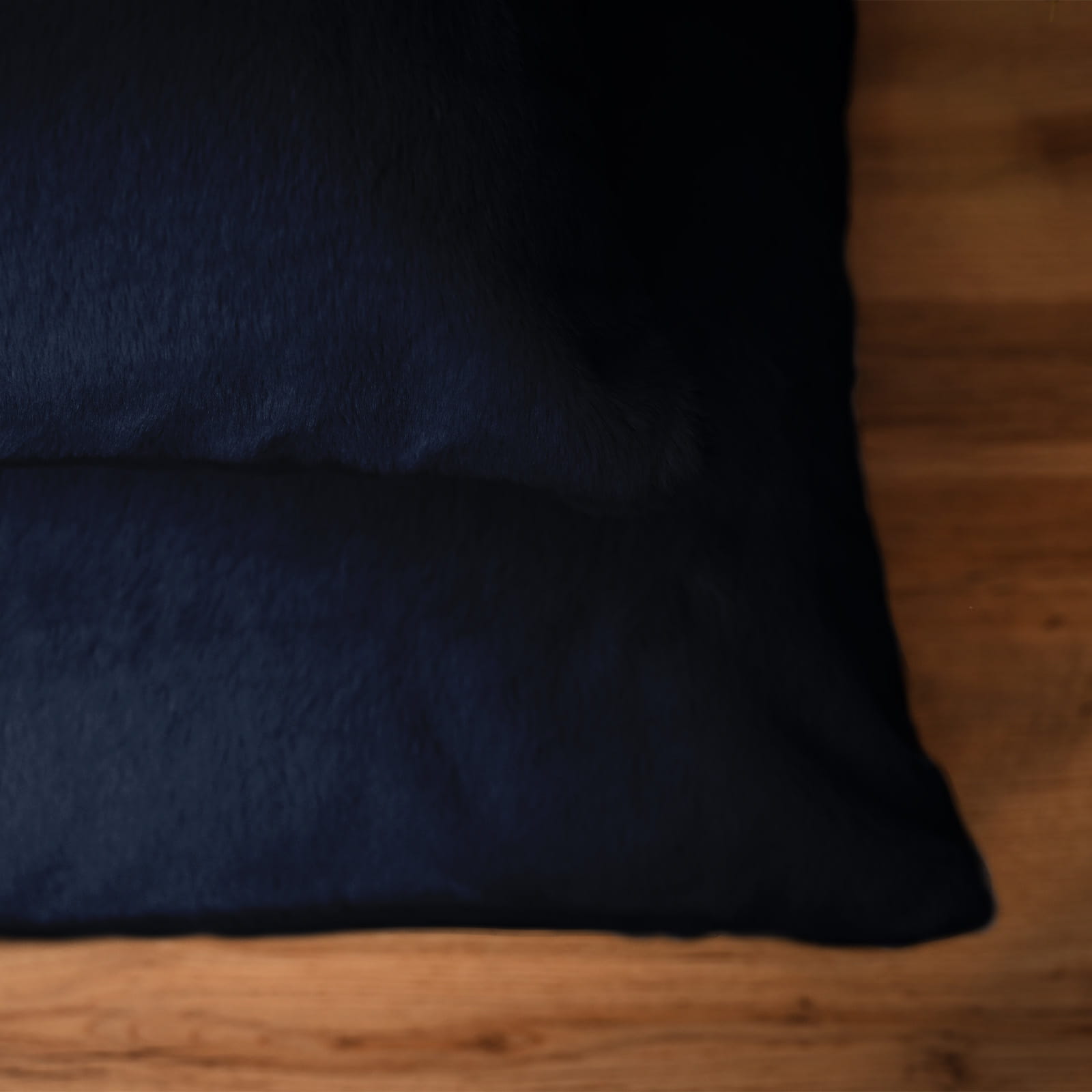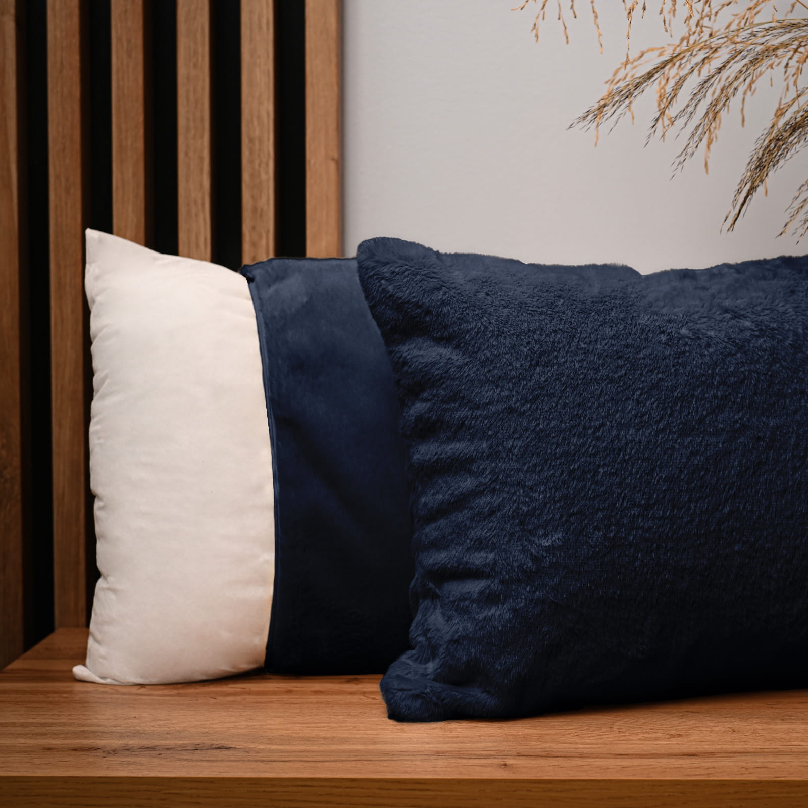 Dekoracyjna poszewka na poduszkę 30x50 cm w kolorze granatowym z imitacji futra