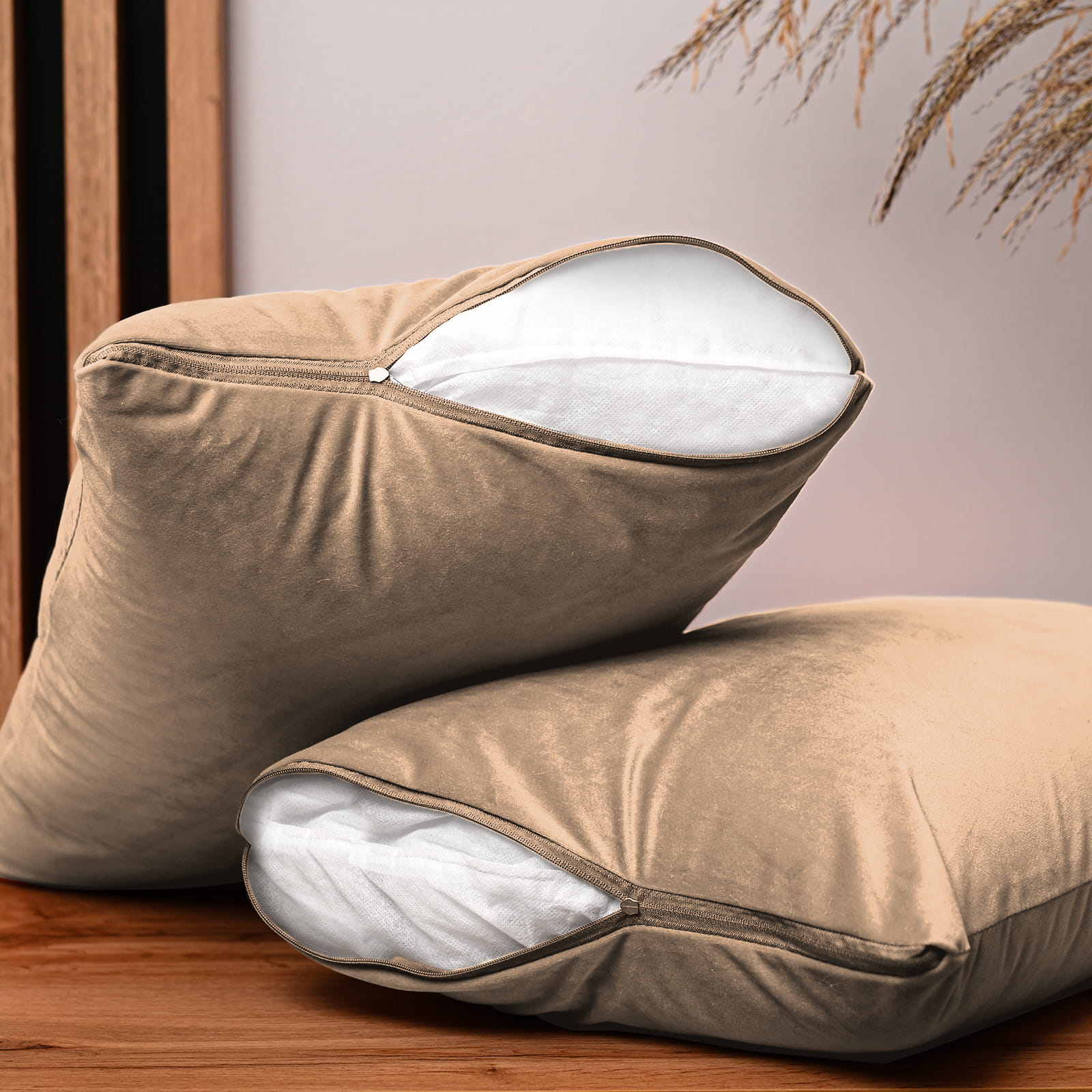 Dekoracyjna poszewka na poduszkę 30x50 cm w kolorze jasnobrązowym z tkaniny welurowej