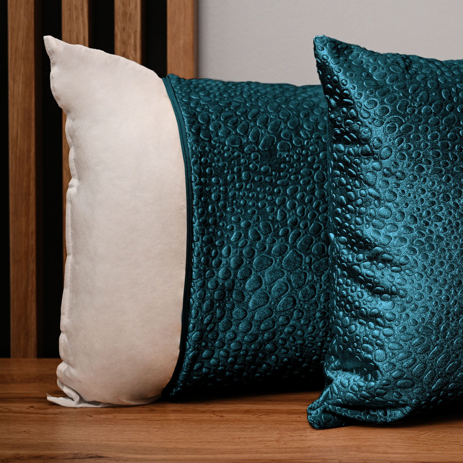 Dekoracyjna poszewka na poduszkę 30x50 cm w kolorze turkusowym z tkaniny welurowej z teksturą “kropelki”