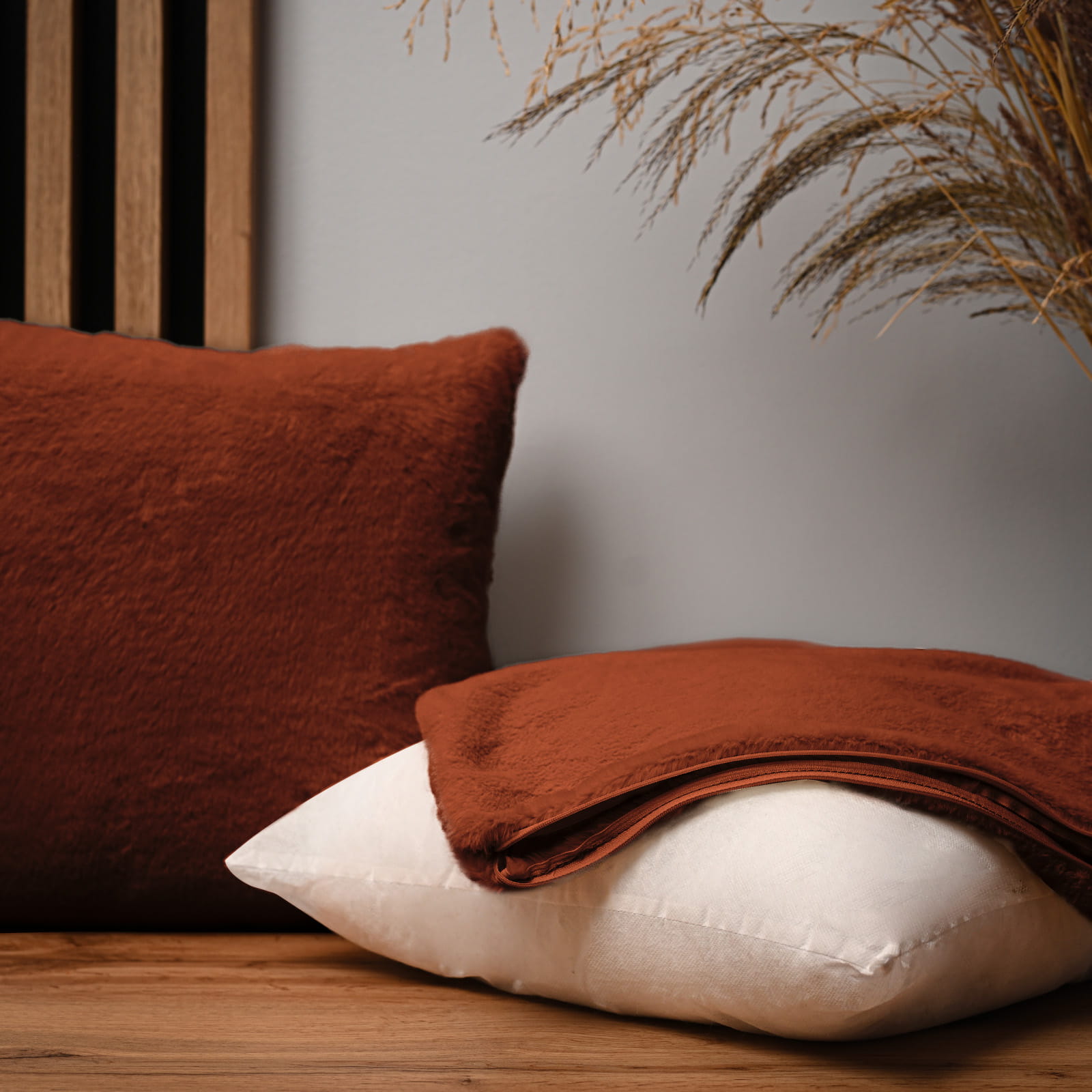 Dekoracyjna poszewka na poduszkę 35x35 cm w kolorze ciemnopomarańczowym z imitacji futra