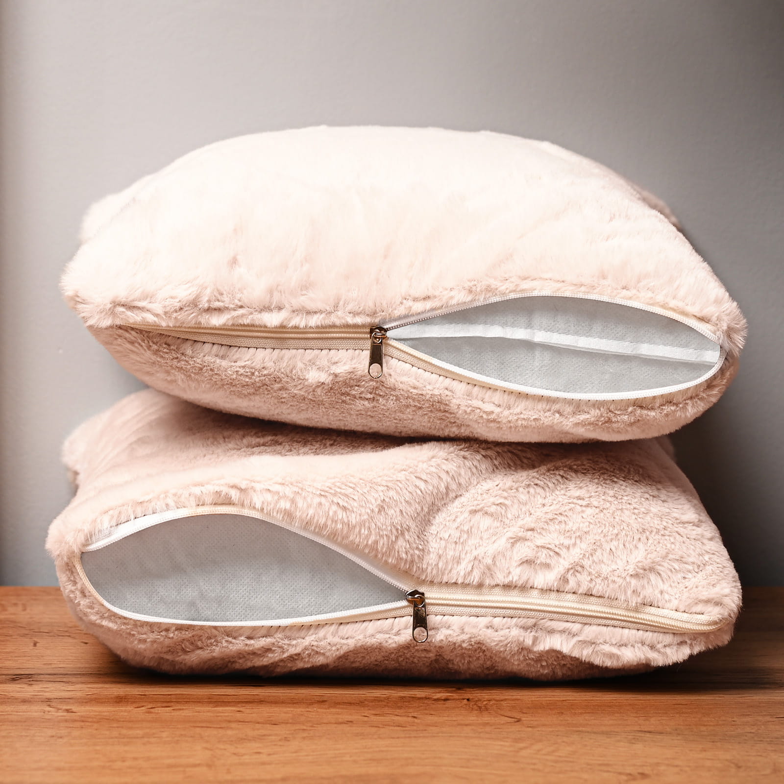 Dekoracyjna poszewka na poduszkę 35x35 cm w kolorze jasnoróżowym z imitacji futra