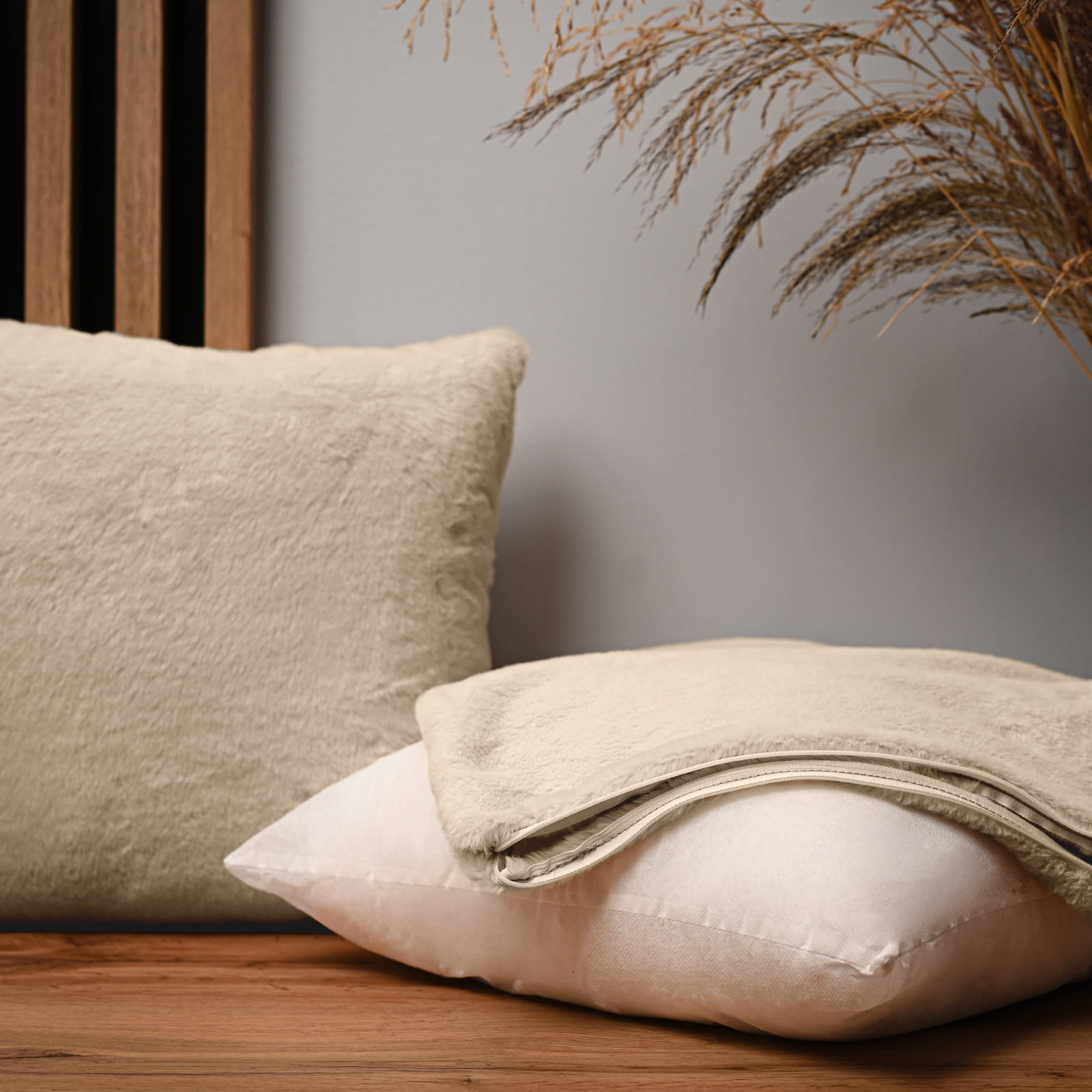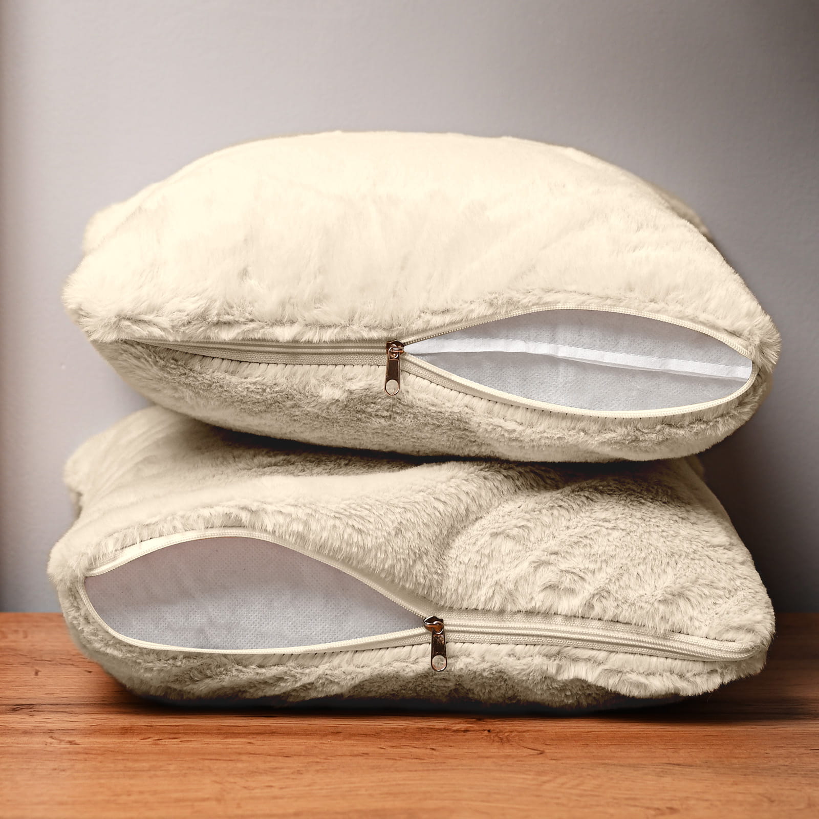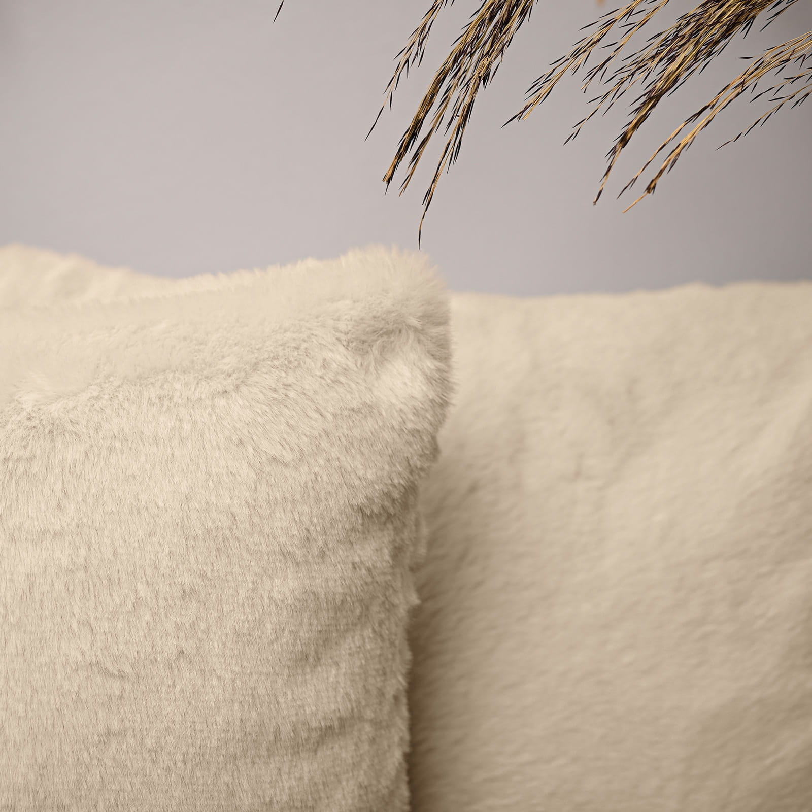 Dekoracyjna poszewka na poduszkę 35x35 cm w kolorze kremowym z imitacji futra