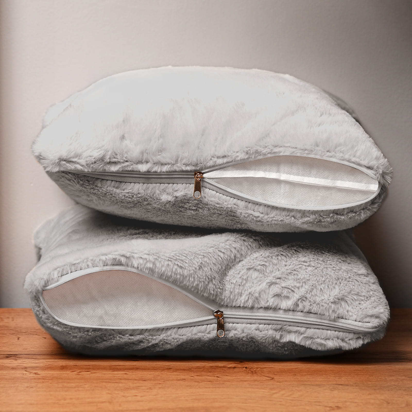 Dekoracyjna poszewka na poduszkę 35x35 cm w kolorze szarym z imitacji futra