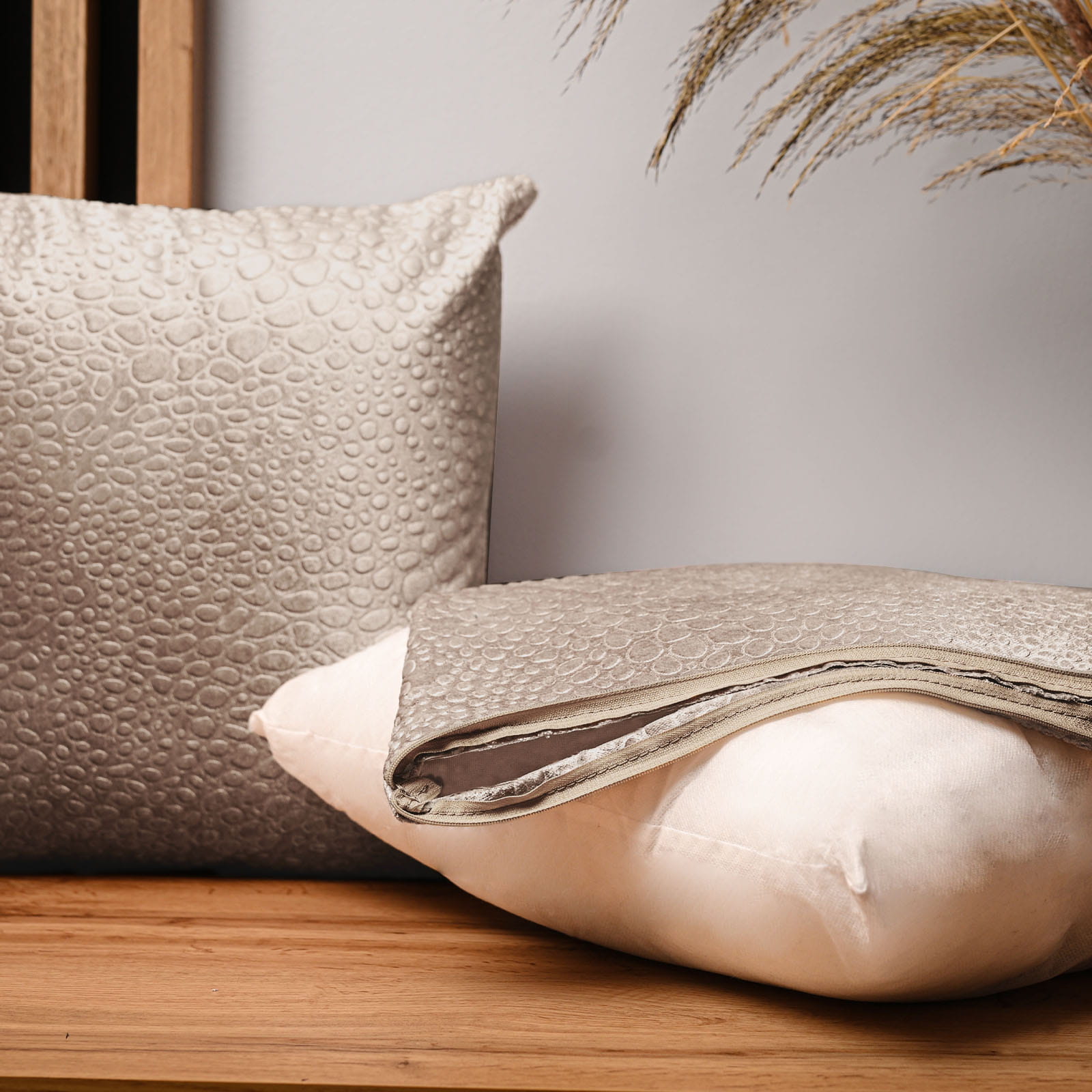 Dekoracyjna poszewka na poduszkę 40x40 cm w kolorze beżowym z tkaniny welurowej z teksturą “kropelki”