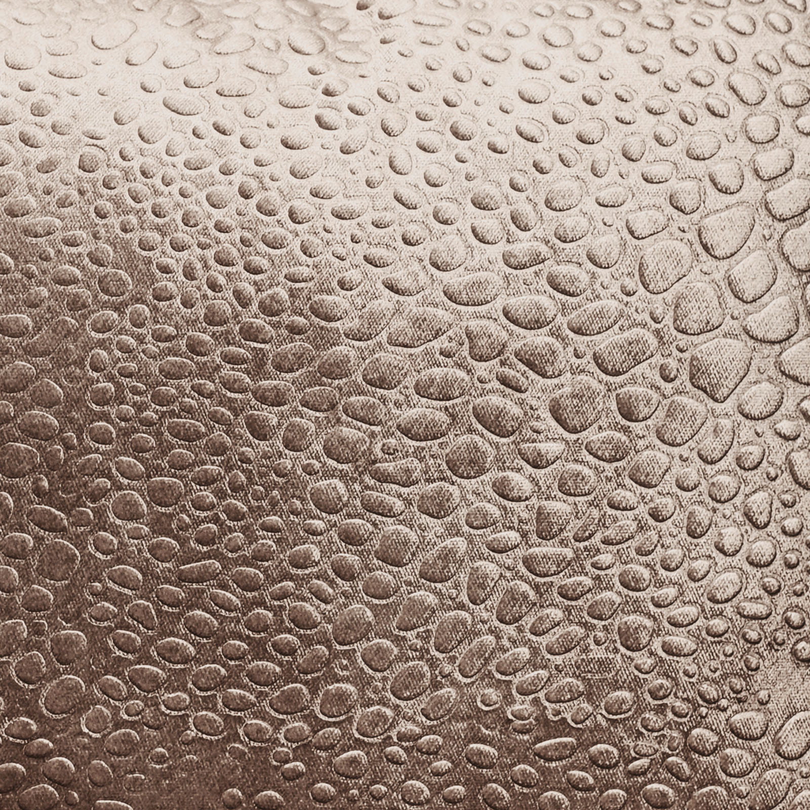 - Tkanina Drop: materiał w typie velvet z wytłoczeniem z wzorem w kształcie kropli, odporny na mechacenie i ścieranie, przyjemny w dotyku.