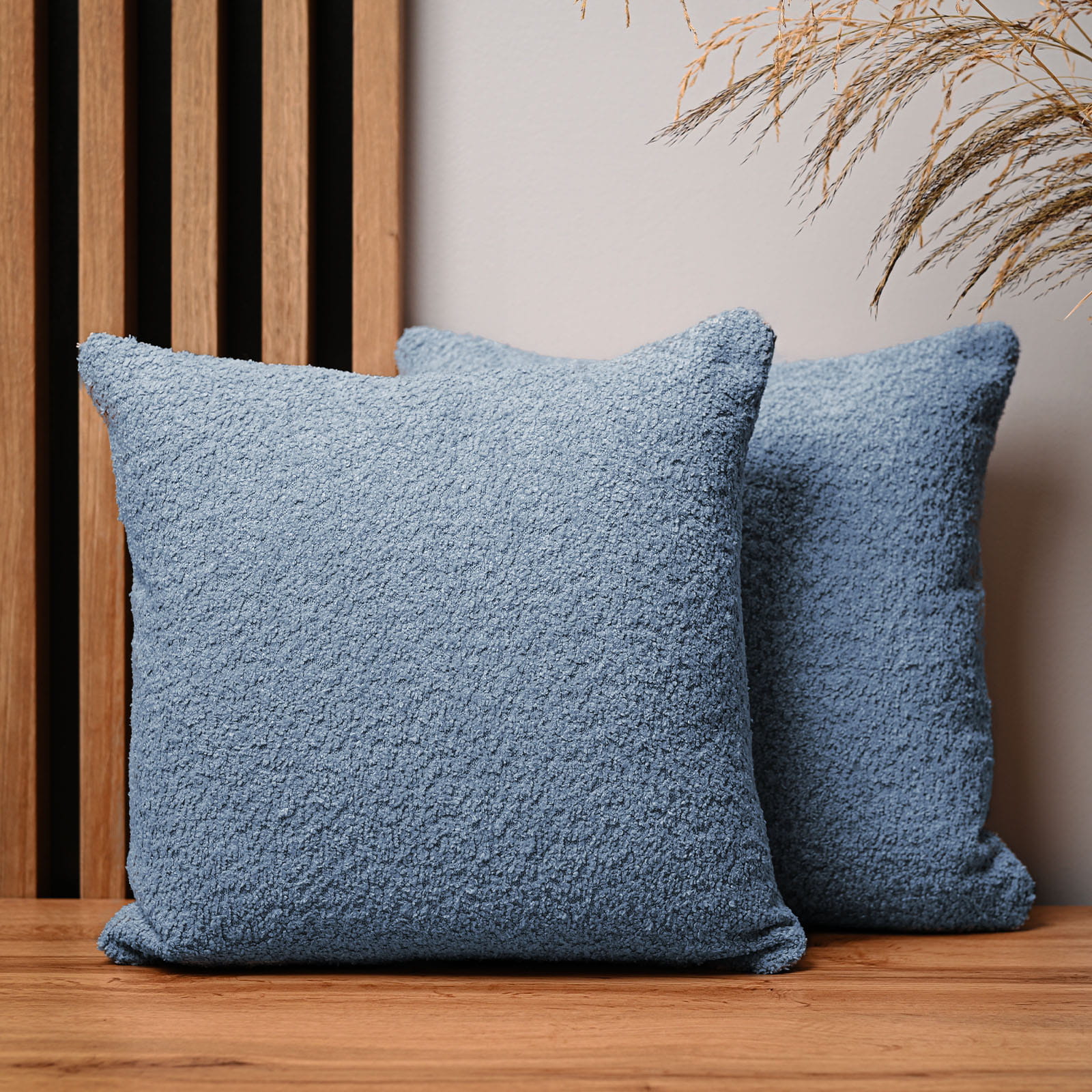 Dekoracyjna poszewka na poduszkę 40x40 cm w kolorze błękitnym z tkaniny szenilowej z teksturą