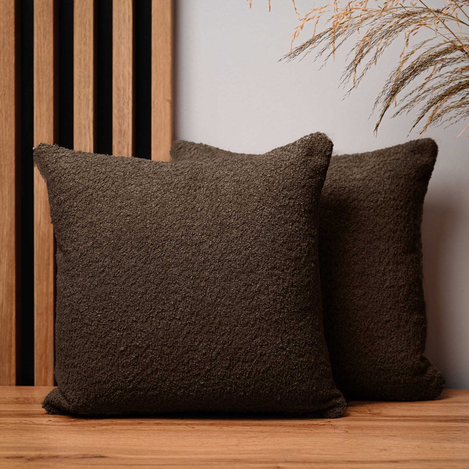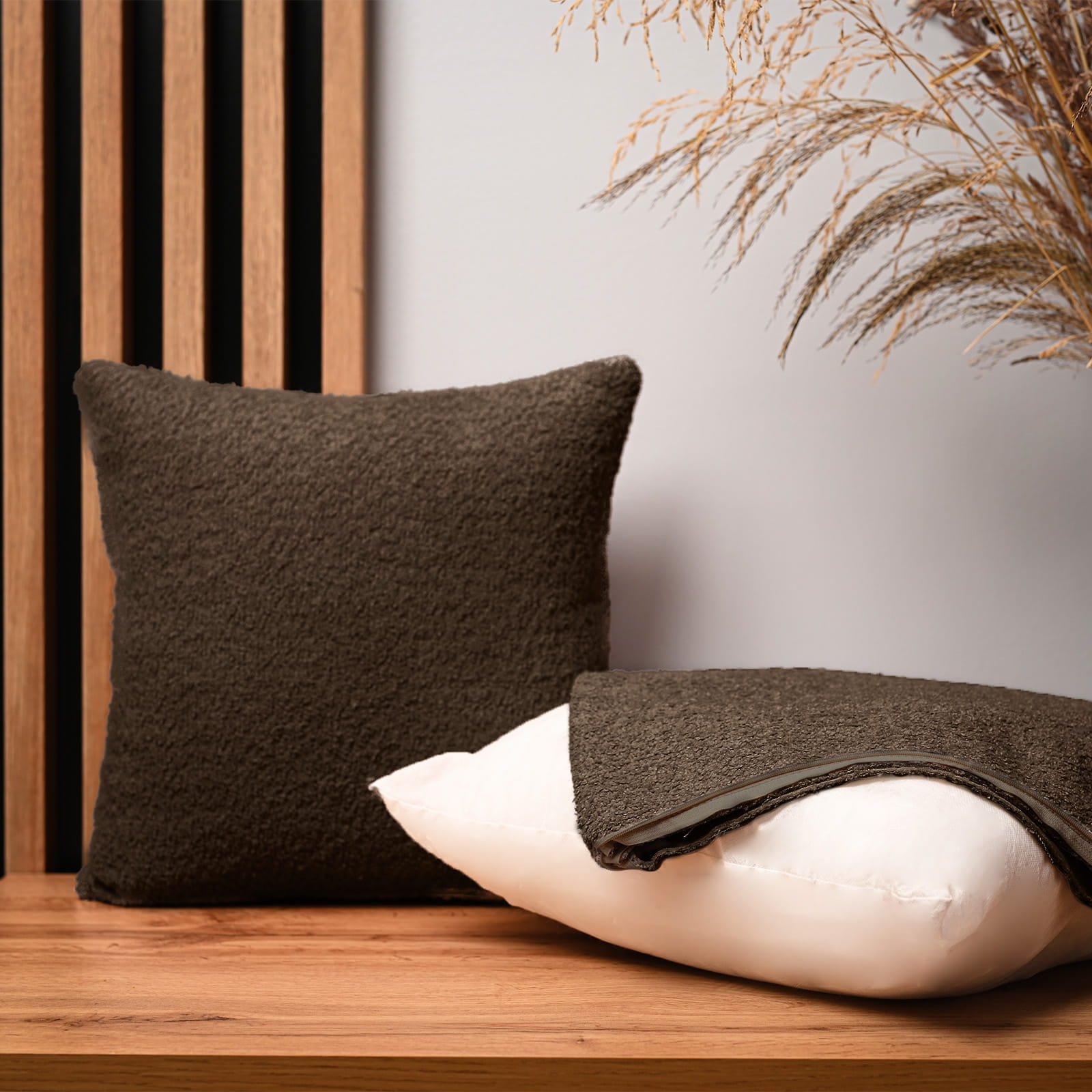 Dekoracyjna poszewka na poduszkę 40x40 cm w kolorze czekoladowym z tkaniny szenilowej z teksturą