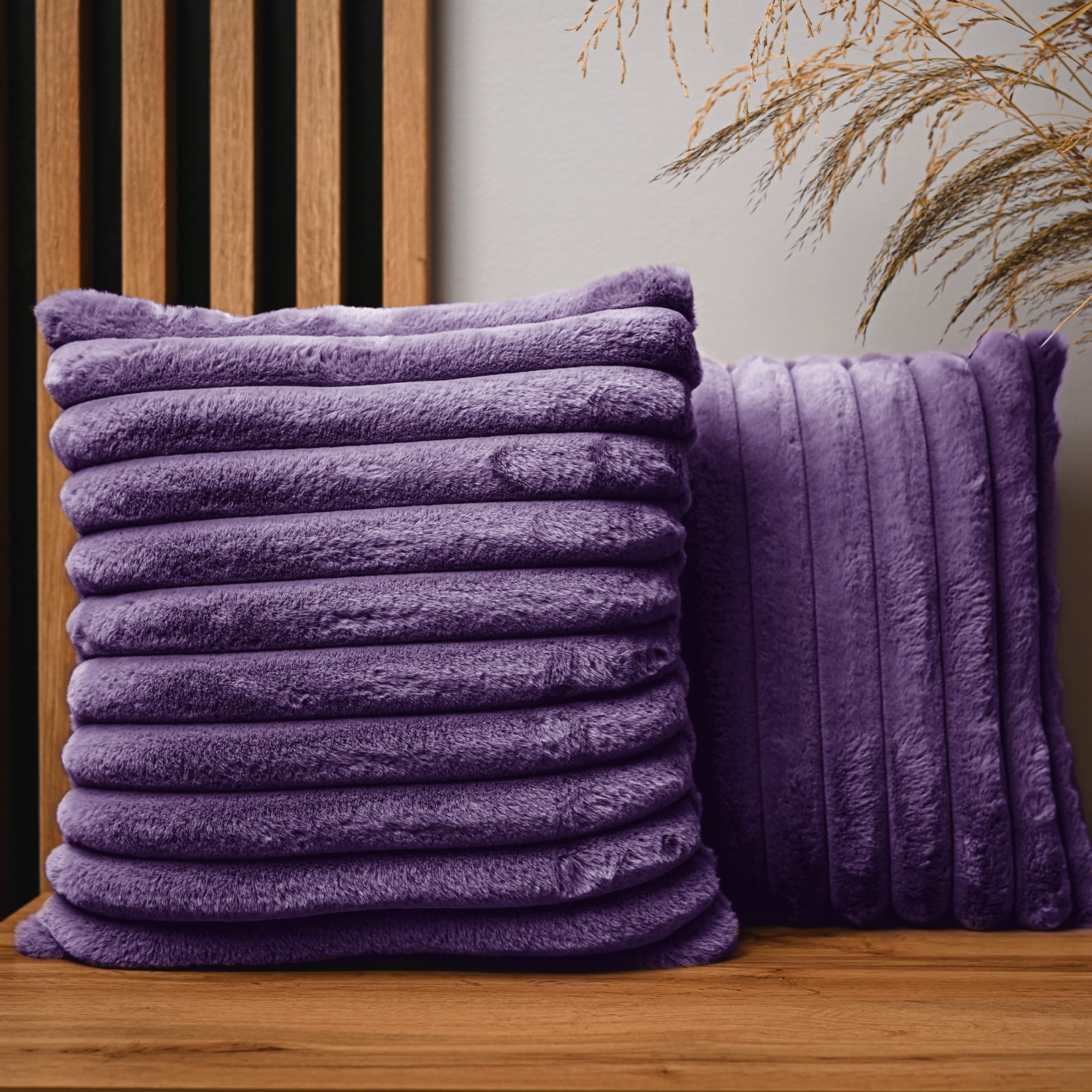 Dekoracyjna poszewka na poduszkę 40x40 cm w kolorze fioletowym z imitacji futra z przeszyciami