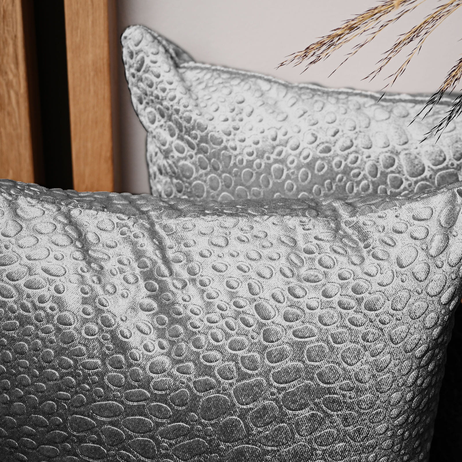 Dekoracyjna poszewka na poduszkę 40x40 cm w kolorze szarym z tkaniny welurowej z teksturą “kropelki”