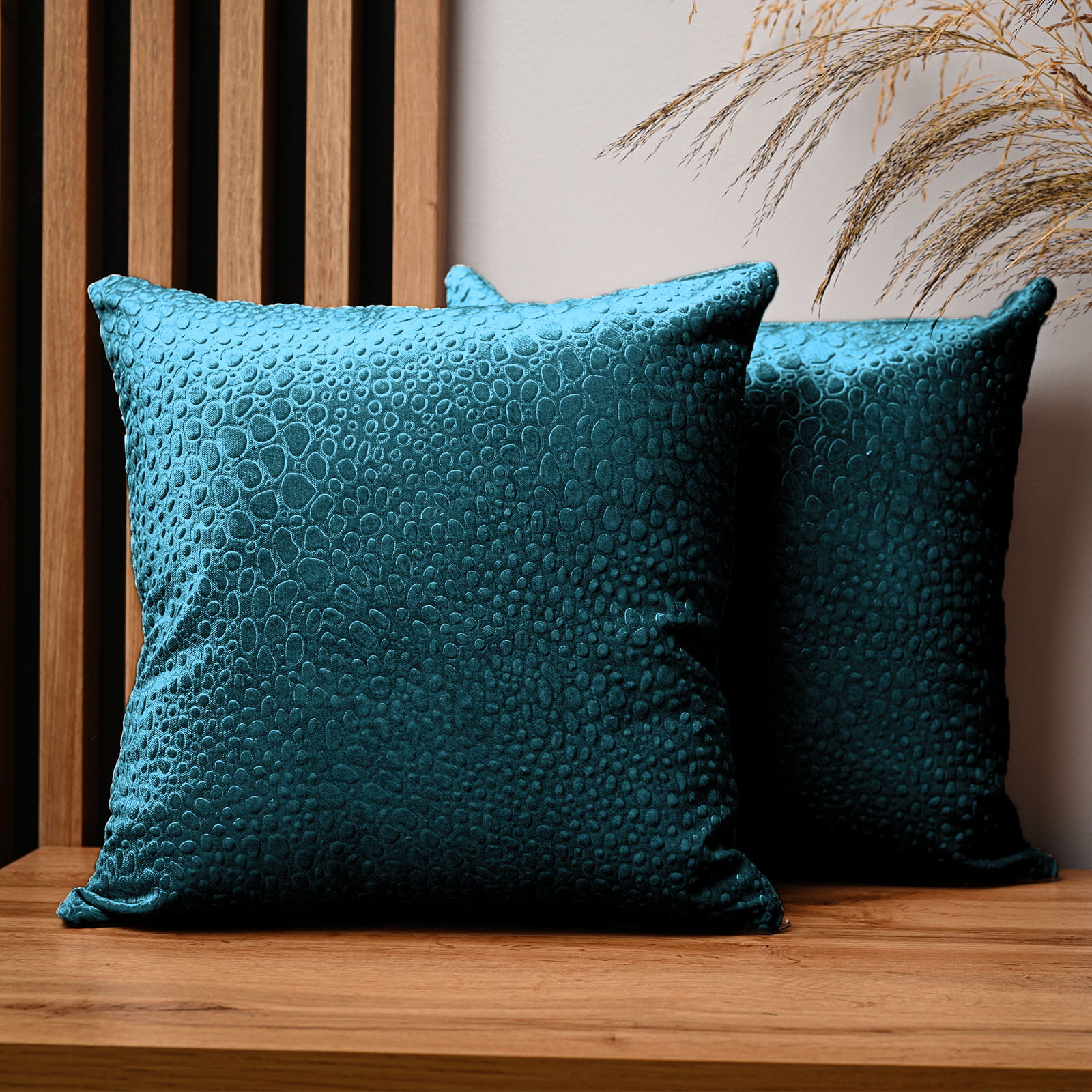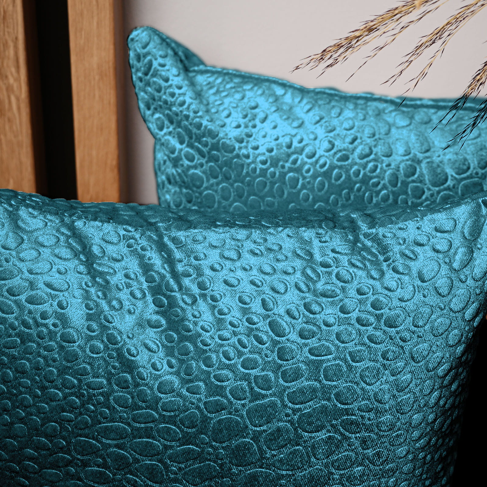 Dekoracyjna poszewka na poduszkę 40x40 cm w kolorze turkusowym z tkaniny welurowej z teksturą “kropelki”