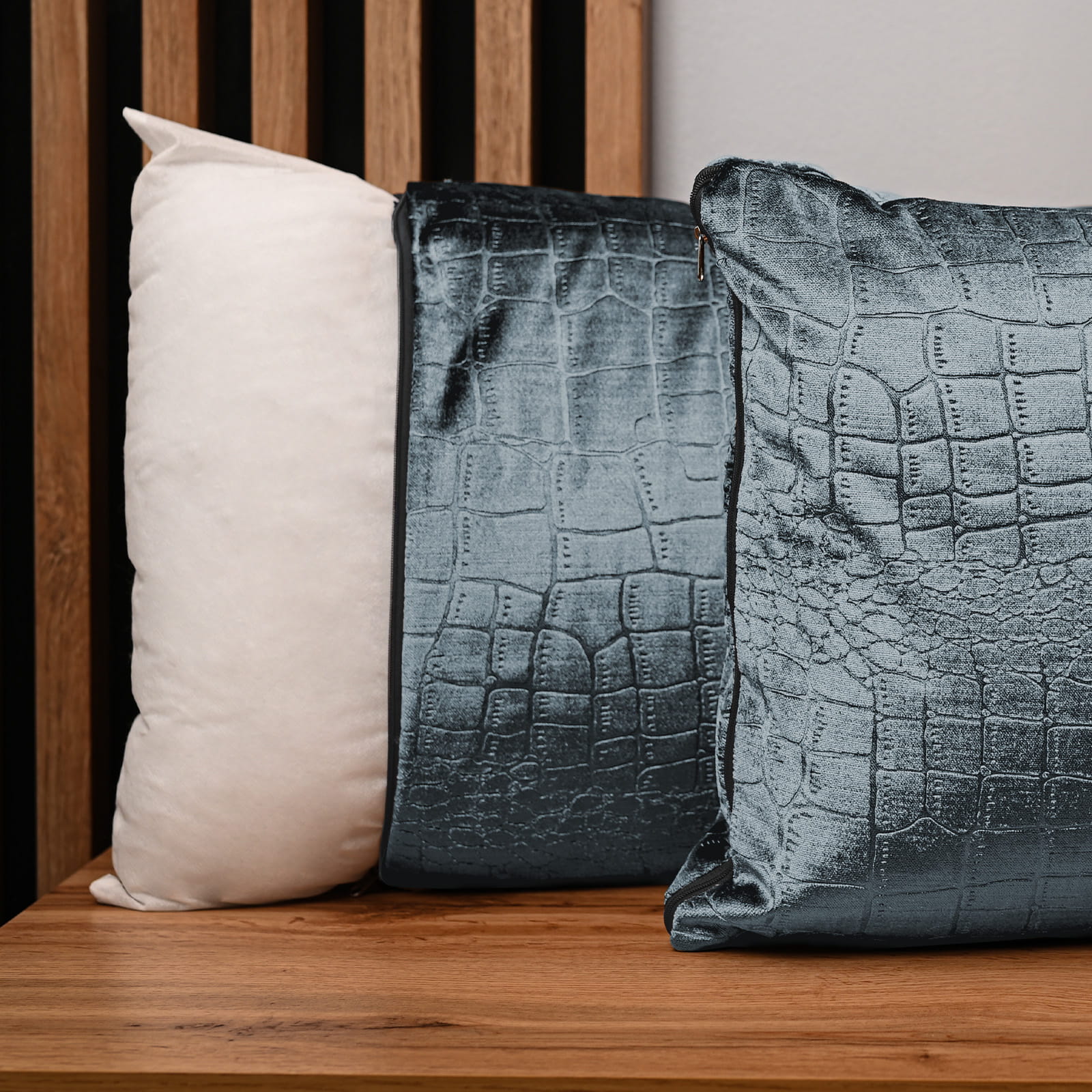 Dekoracyjna poszewka na poduszkę 40x60 cm w kolorze szaroniebieskim tkaniny welurowej z wytłaczanym wzorem “skóra krokodyla”
