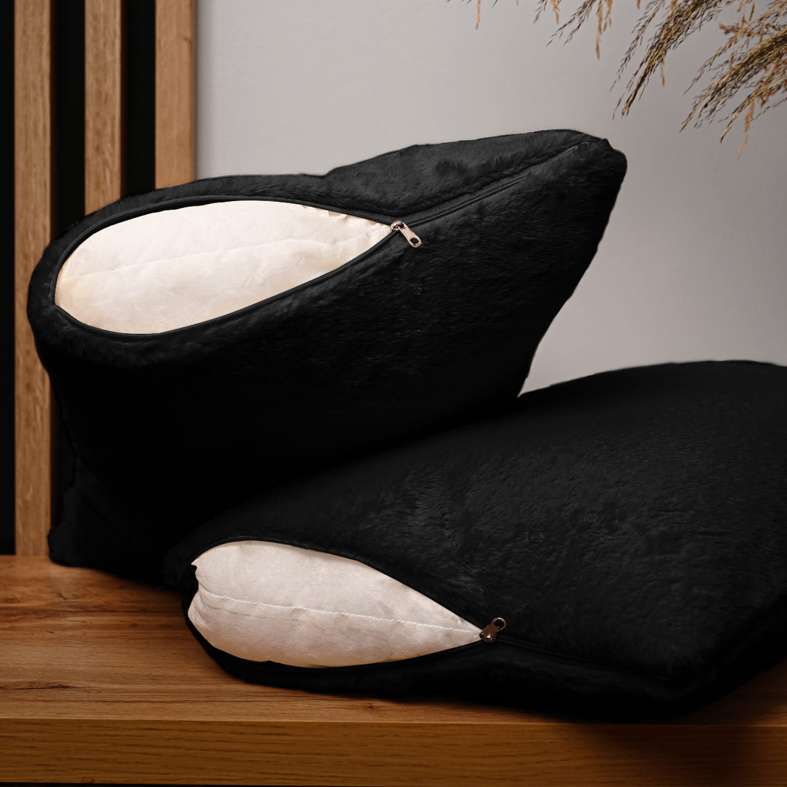 Dekoracyjna poszewka na poduszkę 40x80 cm w kolorze czarnym z imitacji futra