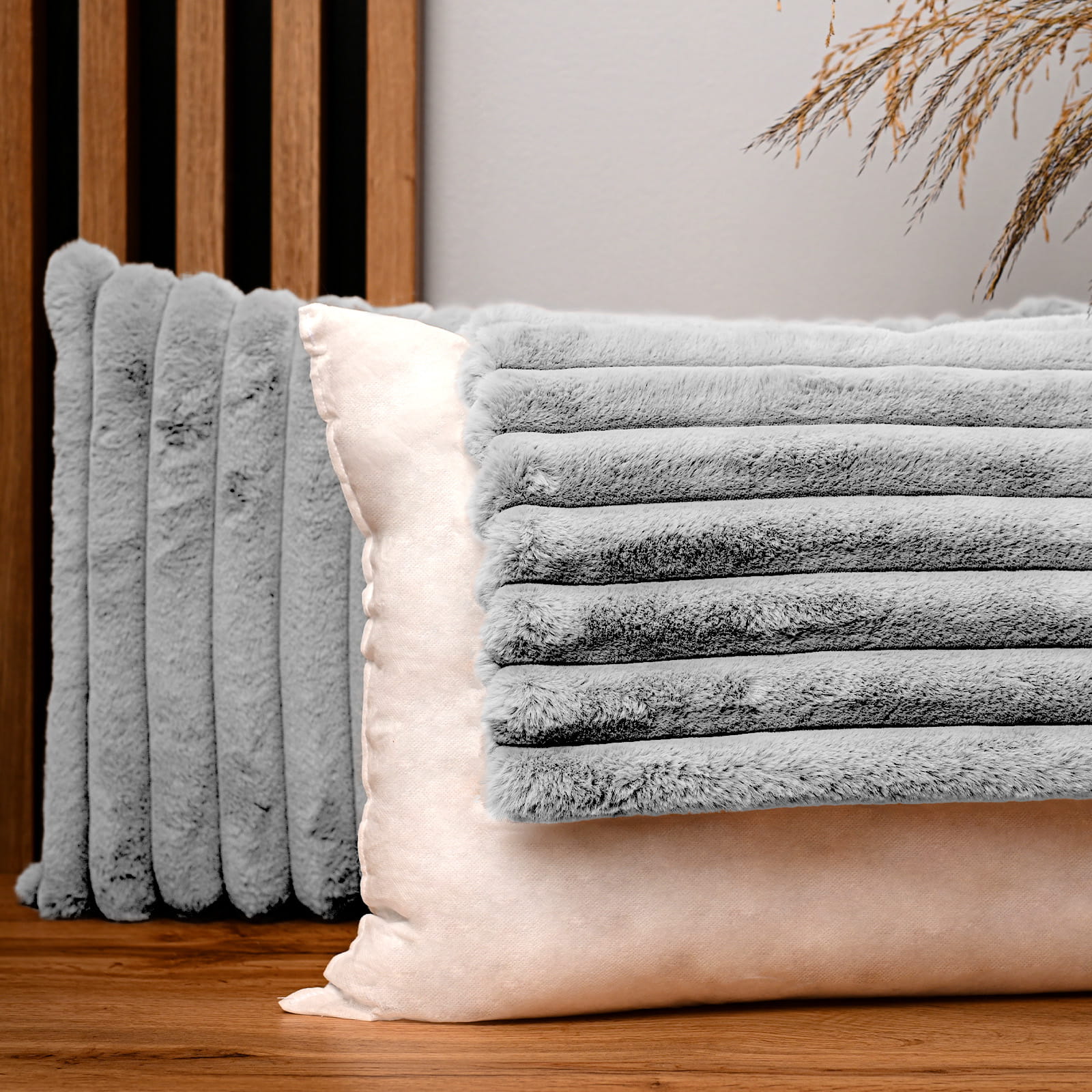 Dekoracyjna poszewka na poduszkę 40x80 cm w kolorze jasnoszarym z imitacji futra z przeszyciami