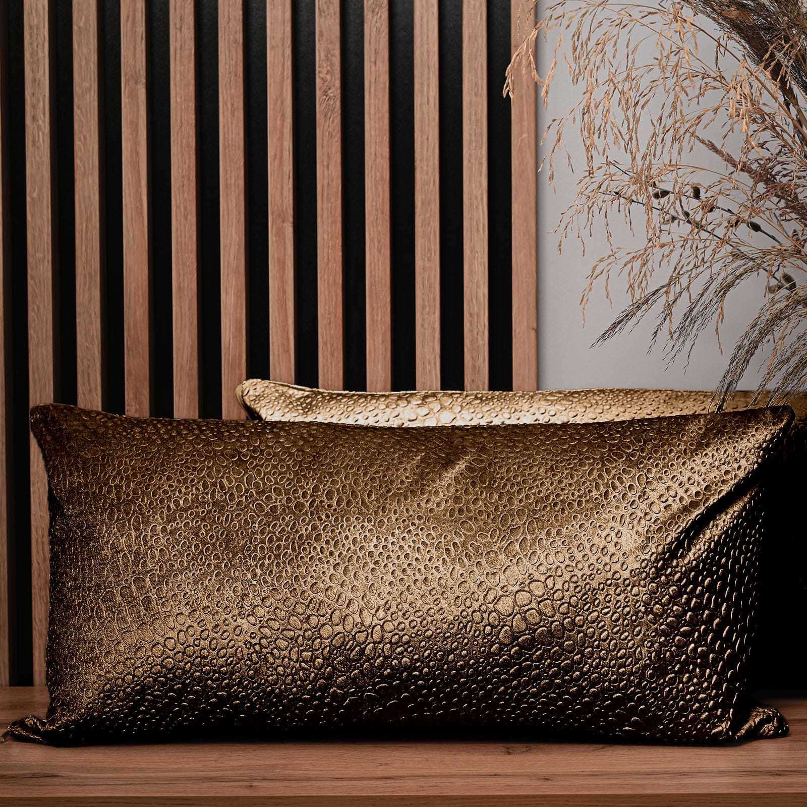 Dekoracyjna poszewka na poduszkę 40x80 cm w kolorze karmelowym z tkaniny welurowej z teksturą “kropelki”