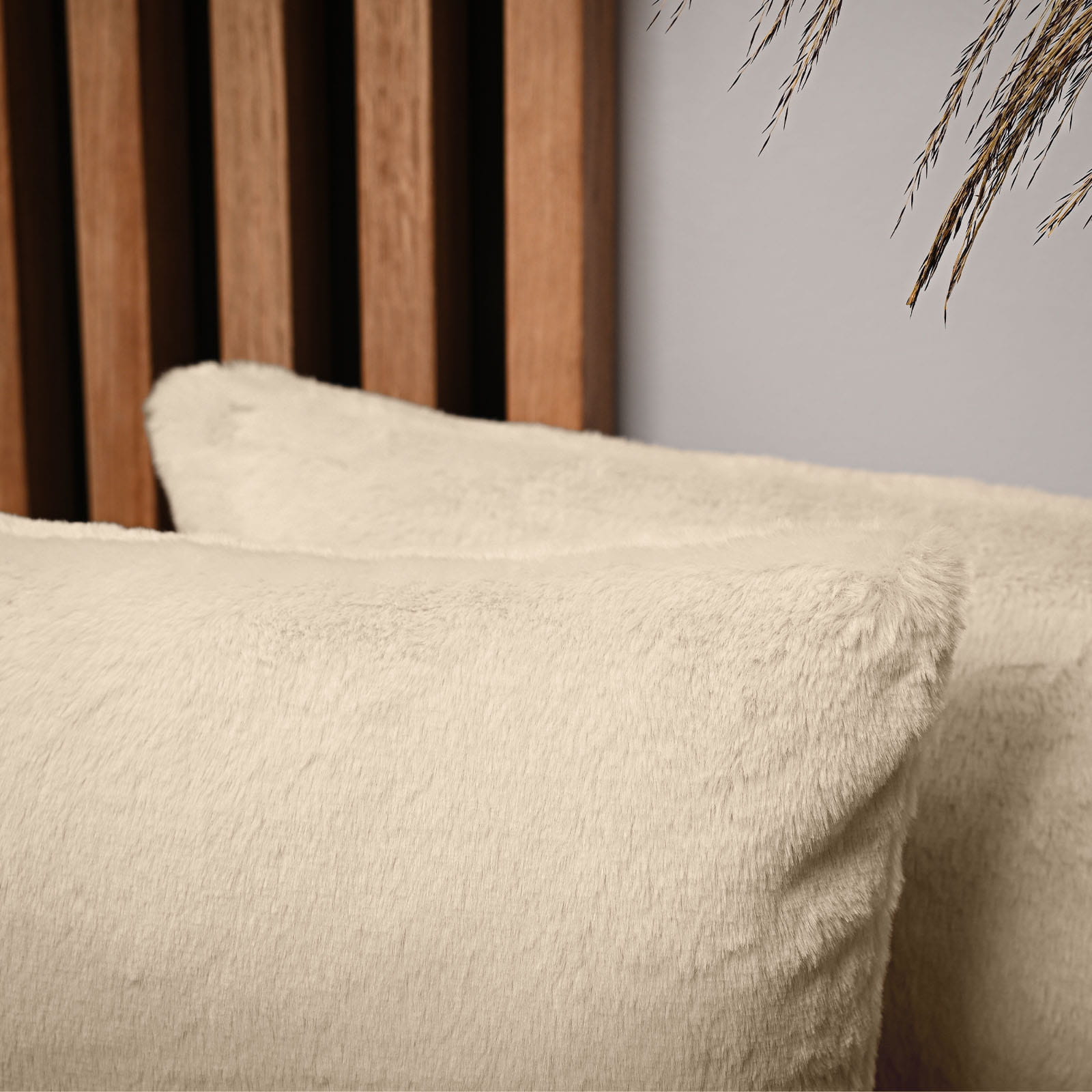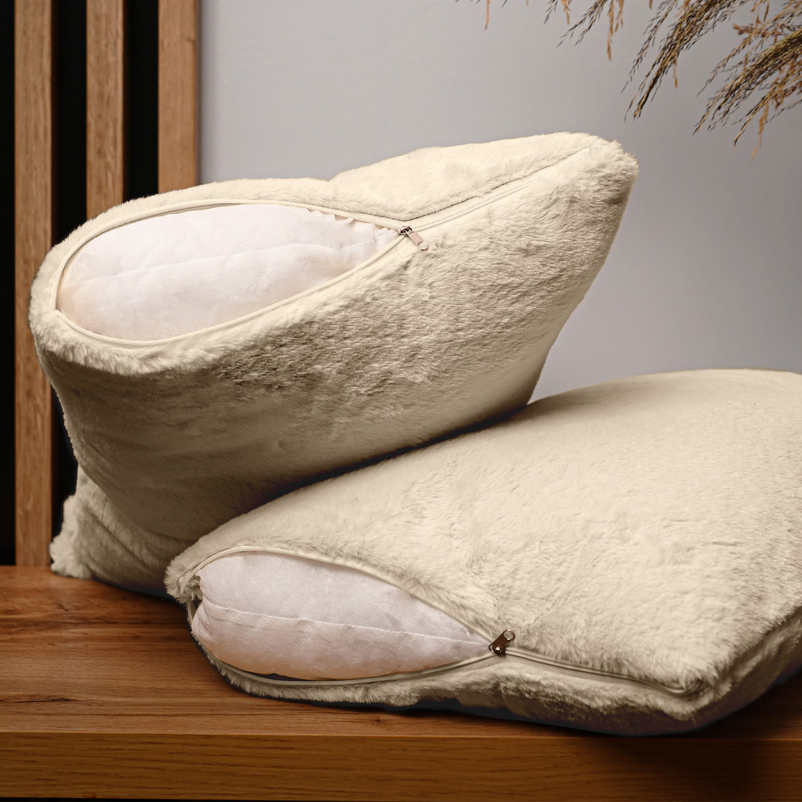 Dekoracyjna poszewka na poduszkę 40x80 cm w kolorze kremowym z imitacji futra