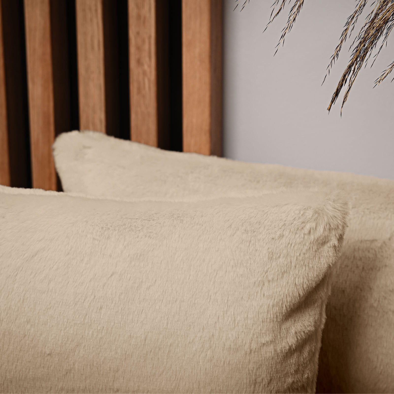 Dekoracyjna poszewka na poduszkę 40x80 cm w kolorze piaskowym z imitacji futra