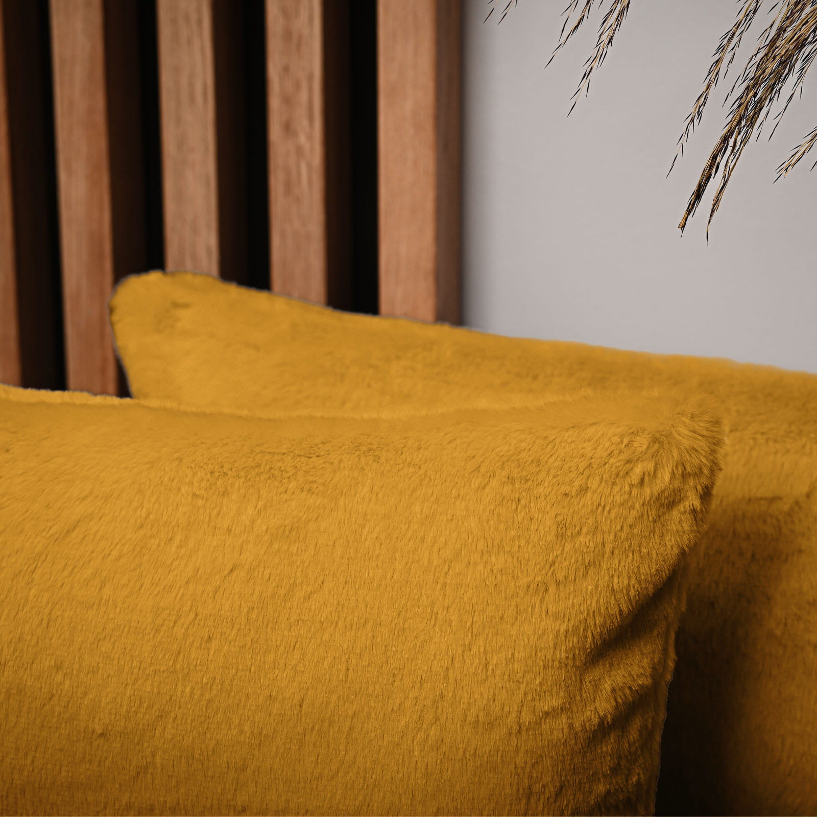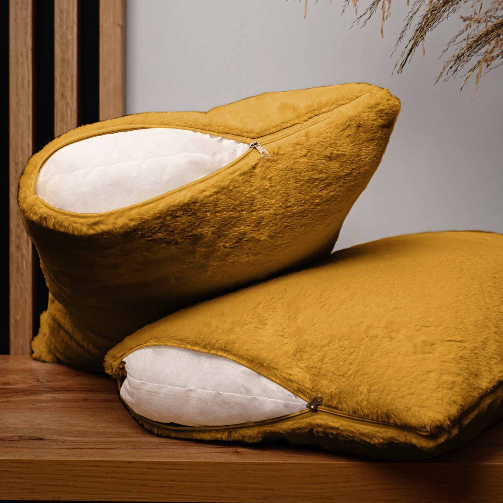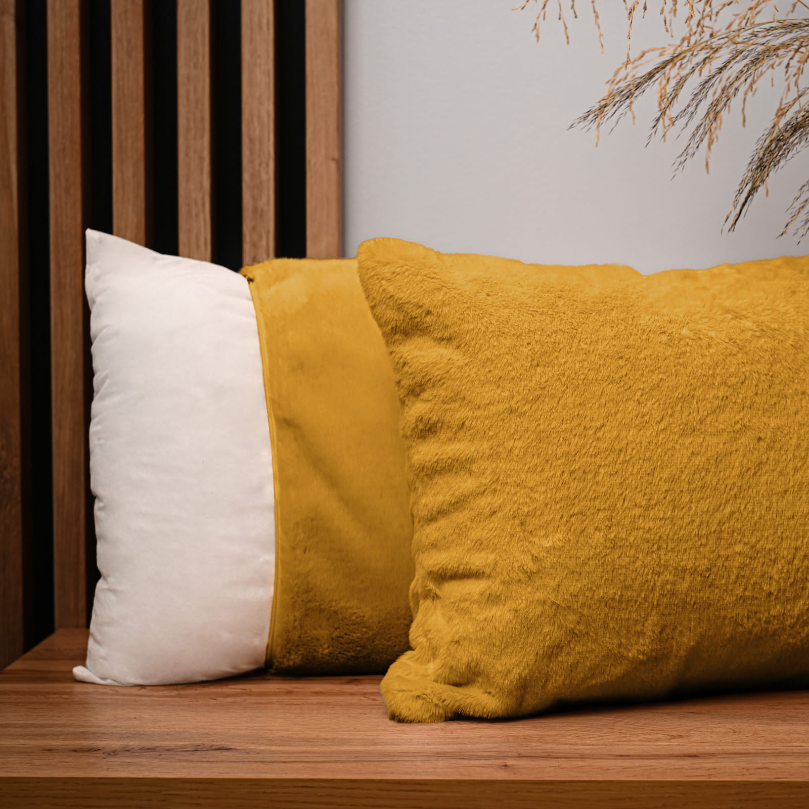 Dekoracyjna poszewka na poduszkę 40x80 cm w kolorze żółtym z imitacji futra
