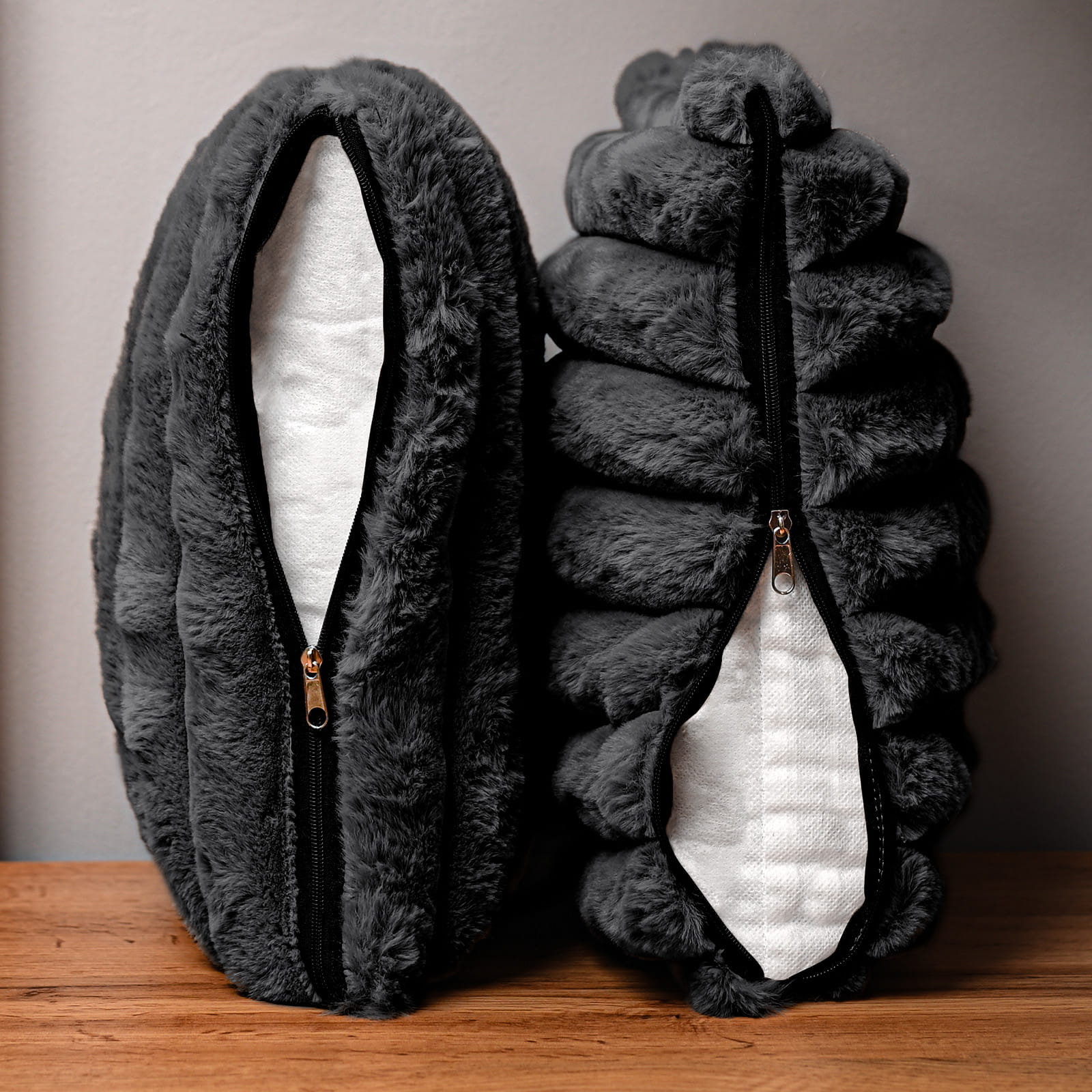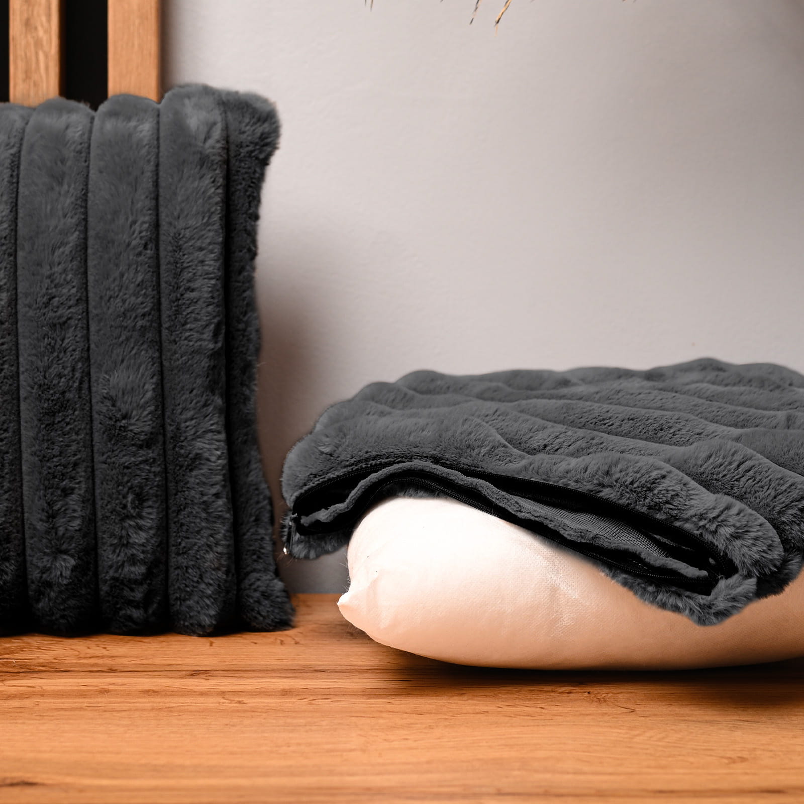 Dekoracyjna poszewka na poduszkę 45x45 cm w kolorze antracytowym z imitacji futra z przeszyciami