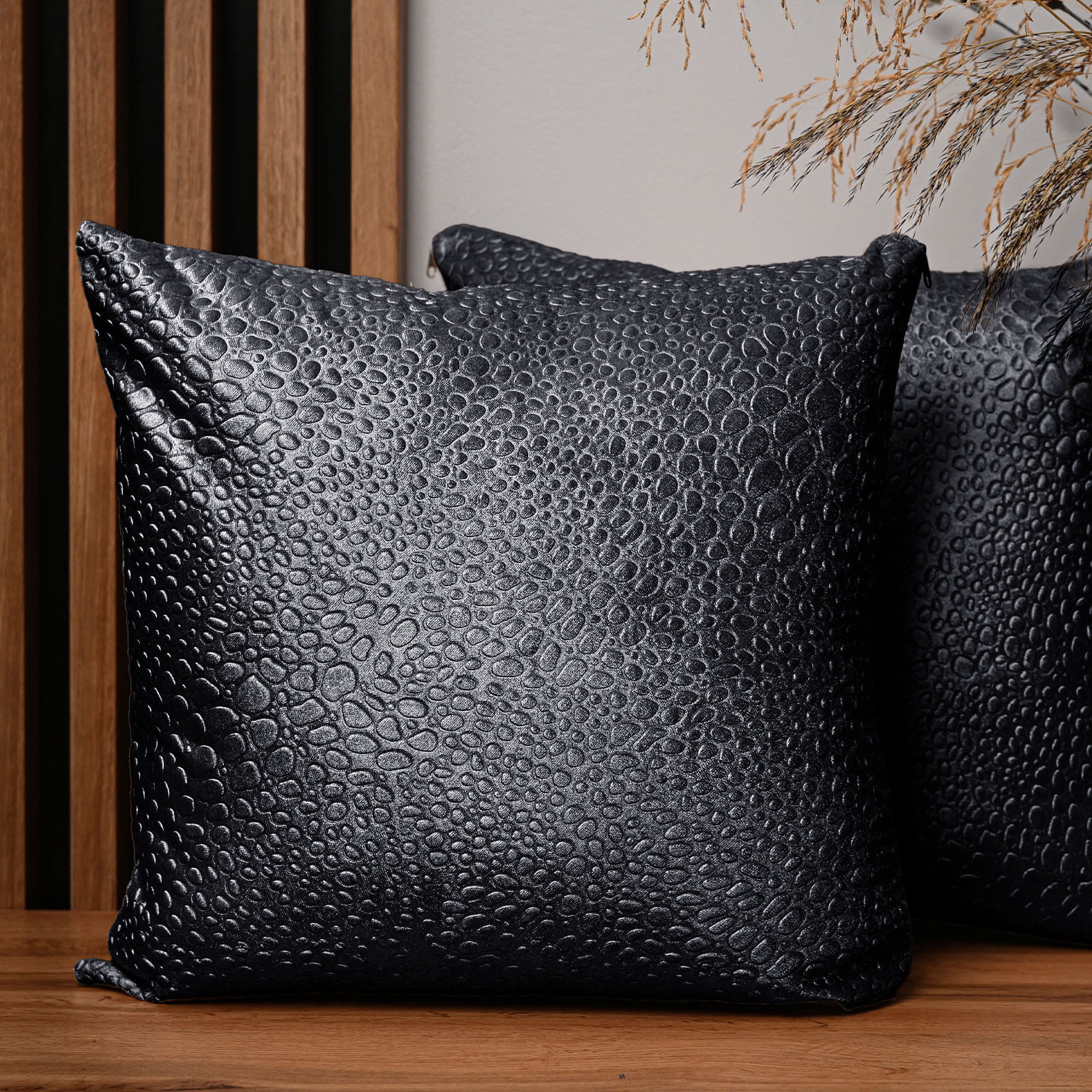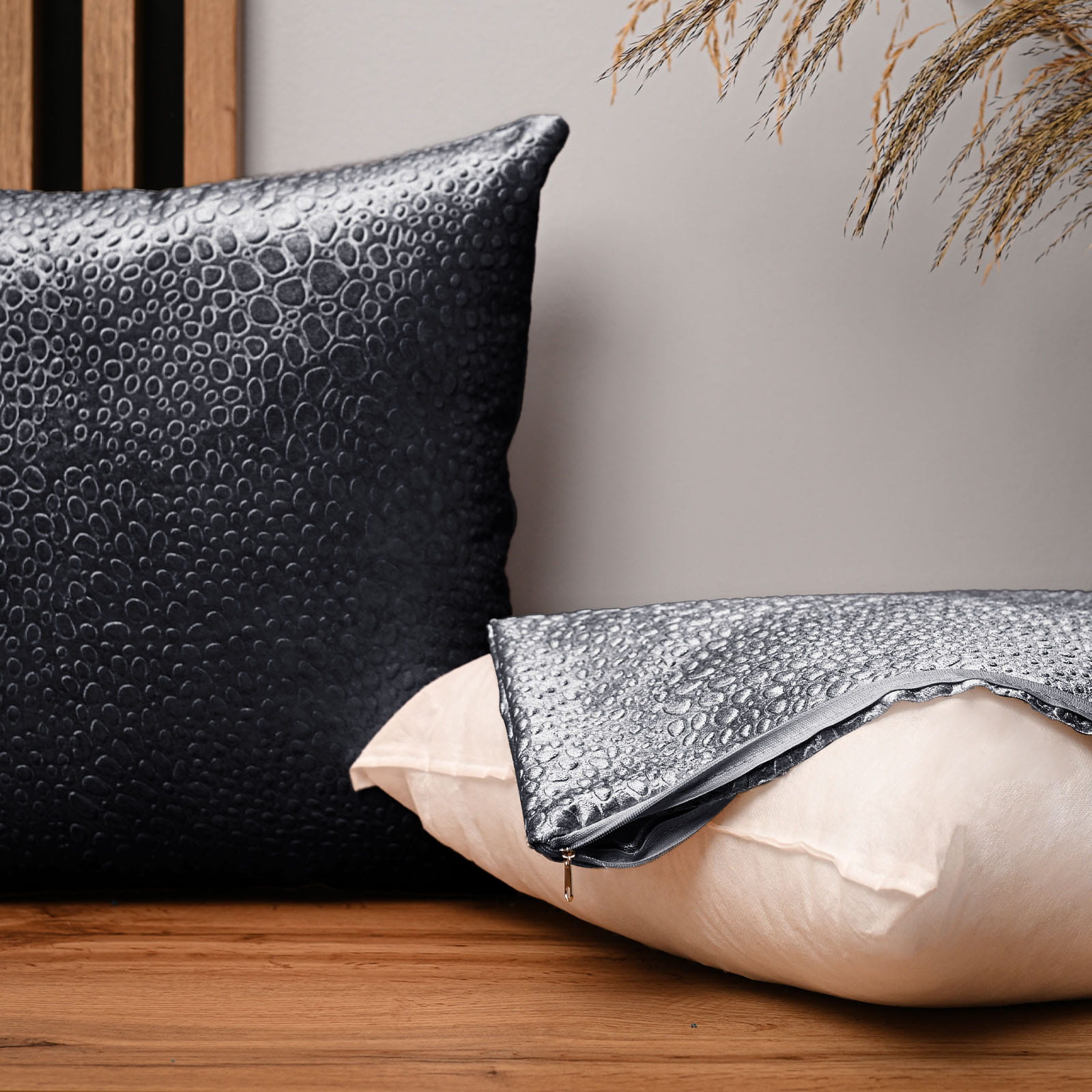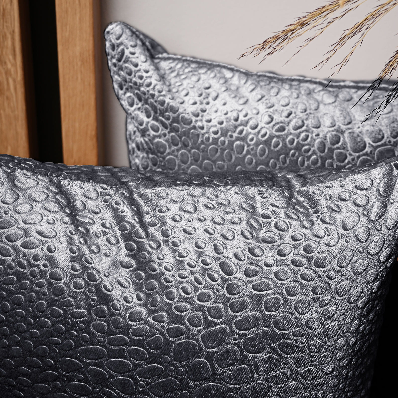 Dekoracyjna poszewka na poduszkę 45x45 cm w kolorze ciemnoszarym z tkaniny welurowej z teksturą “kropelki"