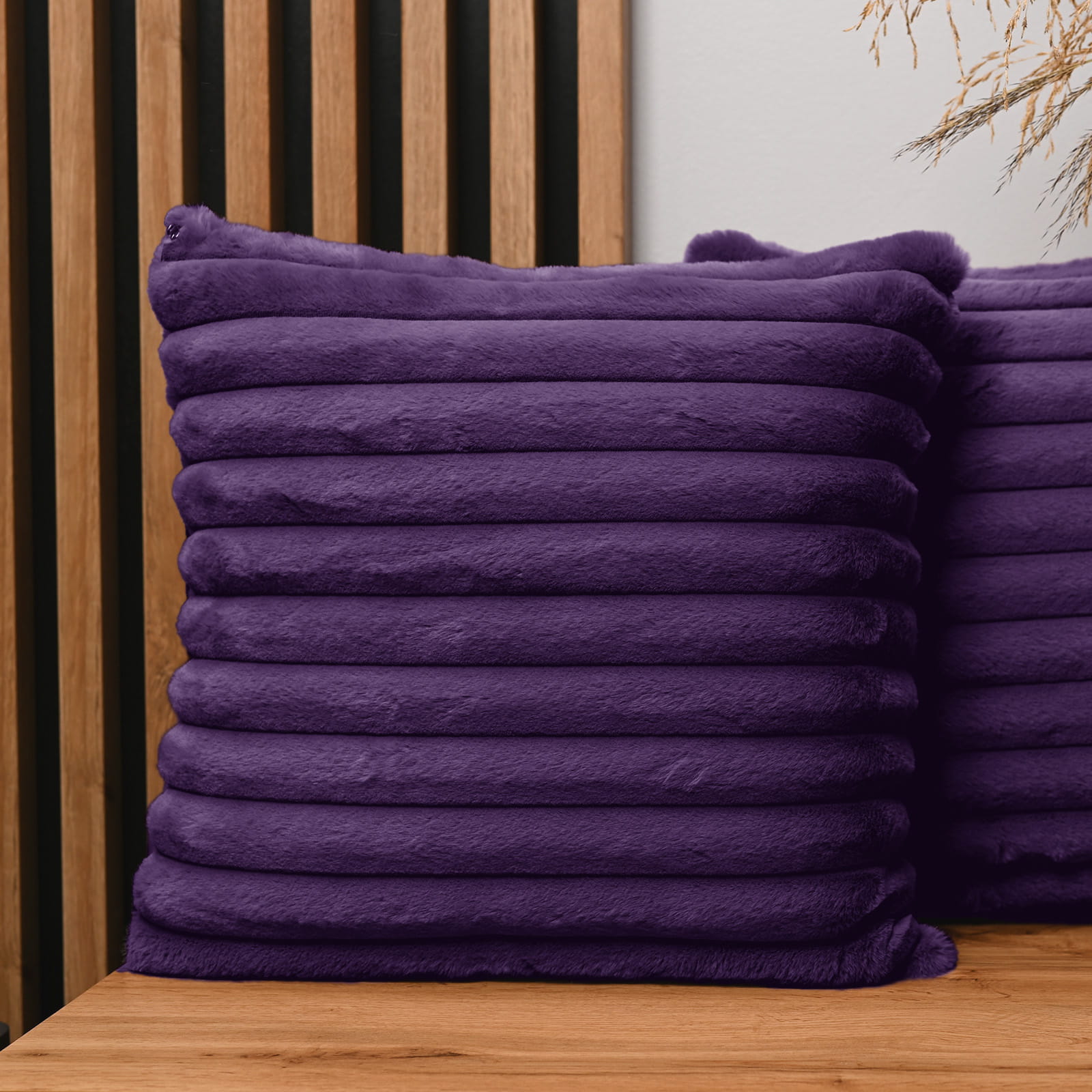 Dekoracyjna poszewka na poduszkę 45x45 cm w kolorze fioletowym z imitacji futra z przeszyciami