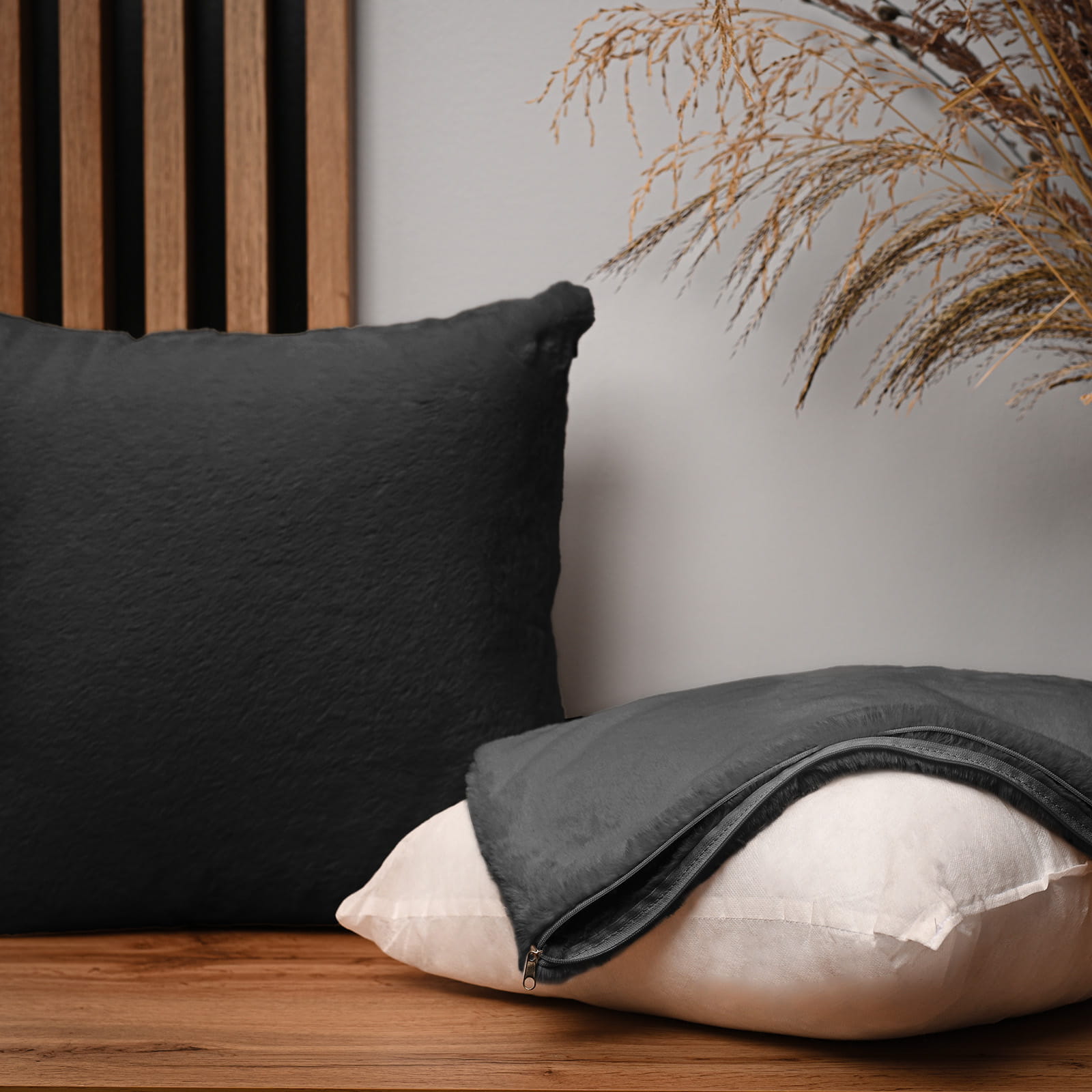 Dekoracyjna poszewka na poduszkę 45x45 cm w kolorze grafitowym z imitacji futra