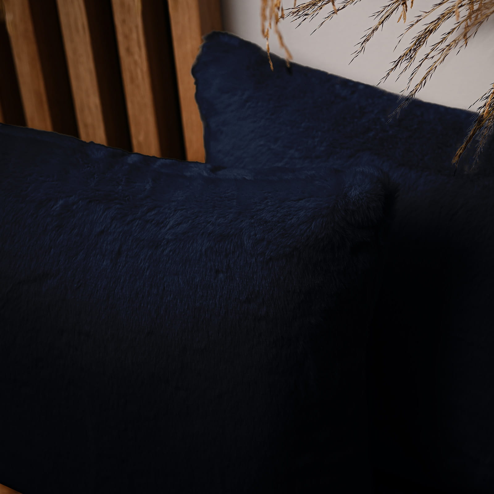 Dekoracyjna poszewka na poduszkę 45x45 cm w kolorze granatowym z imitacji futra
