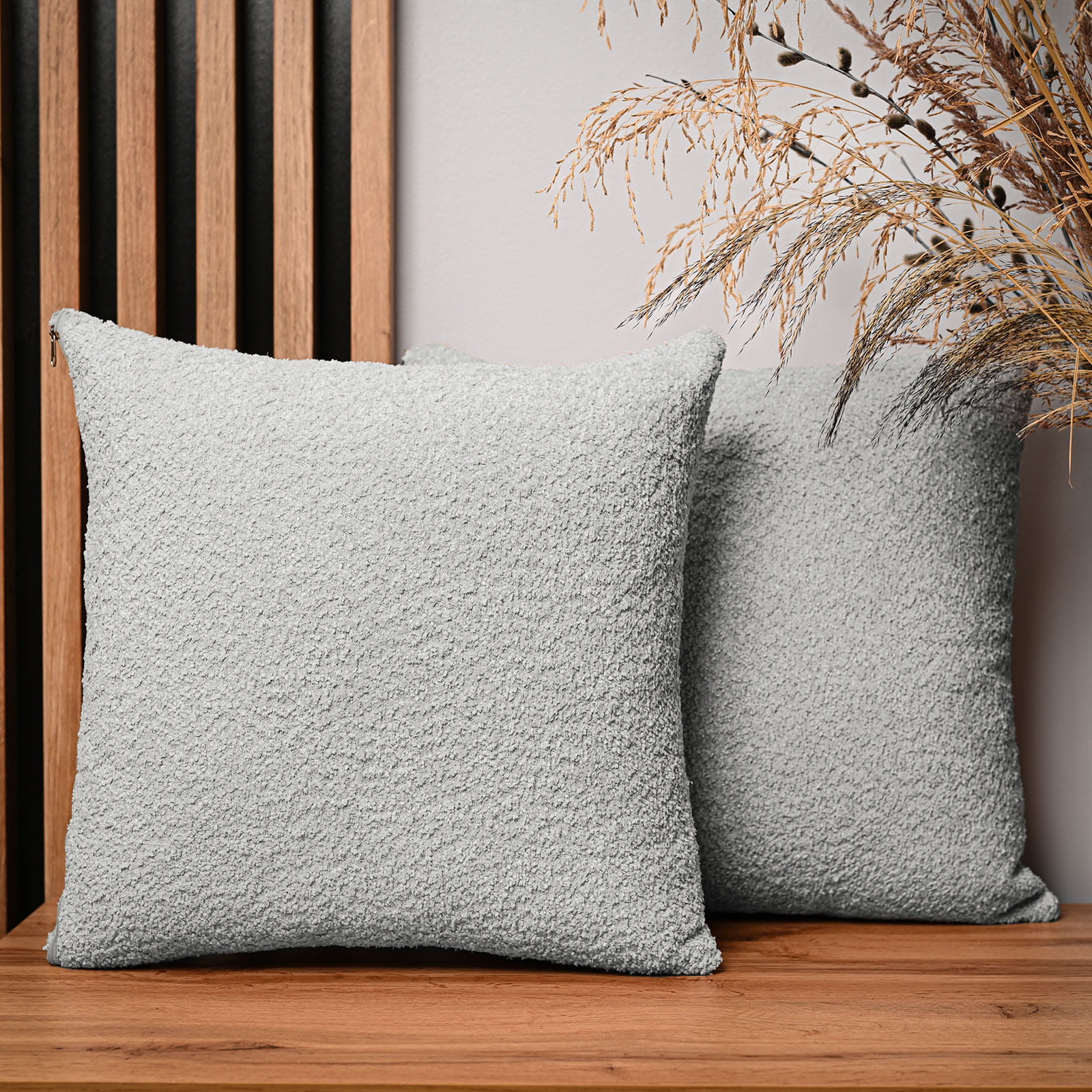 Dekoracyjna poszewka na poduszkę 45x45 cm w kolorze jasnoszarym z tkaniny szenilowej z teksturą