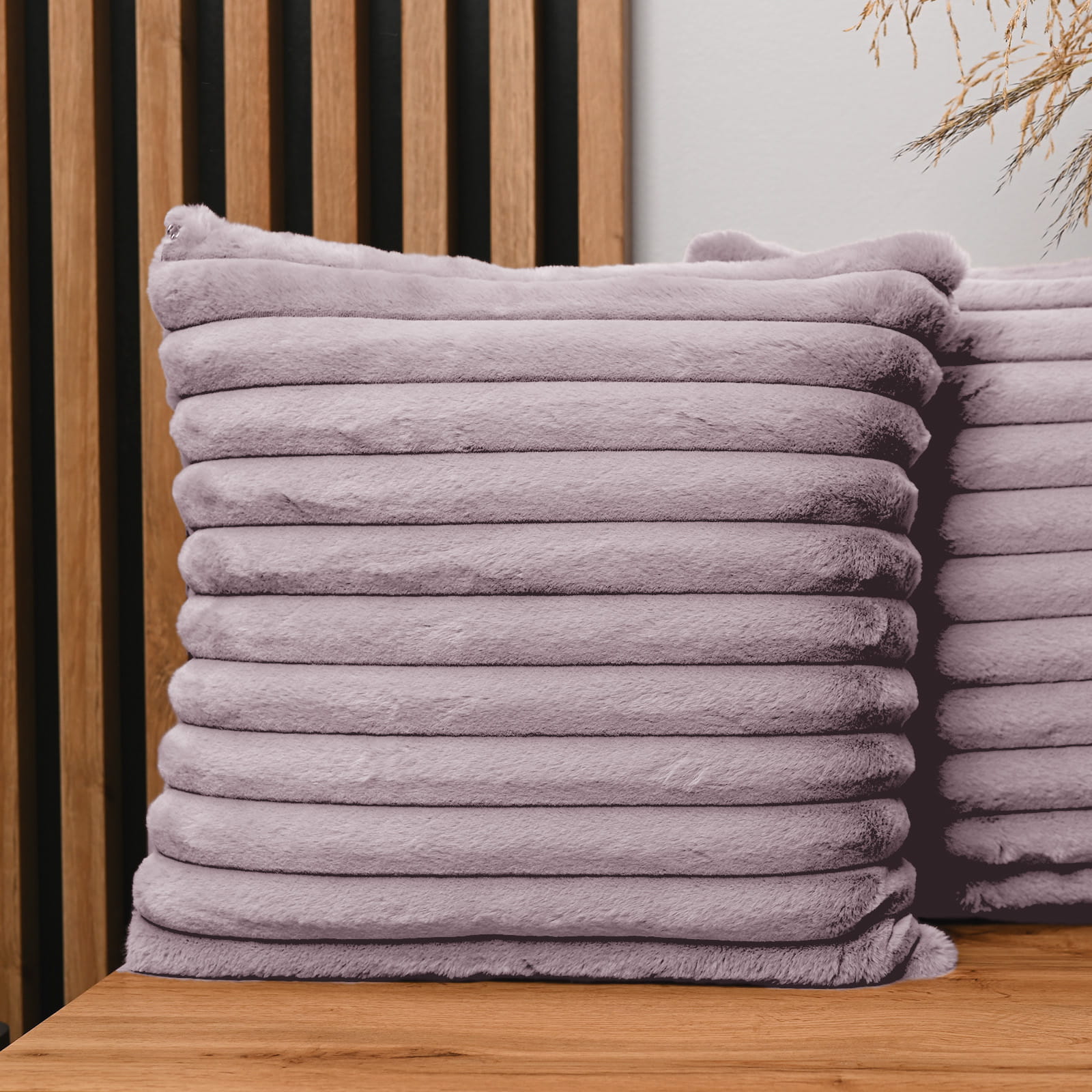 Dekoracyjna poszewka na poduszkę 45x45 cm w kolorze liliowym z imitacji futra z przeszyciami