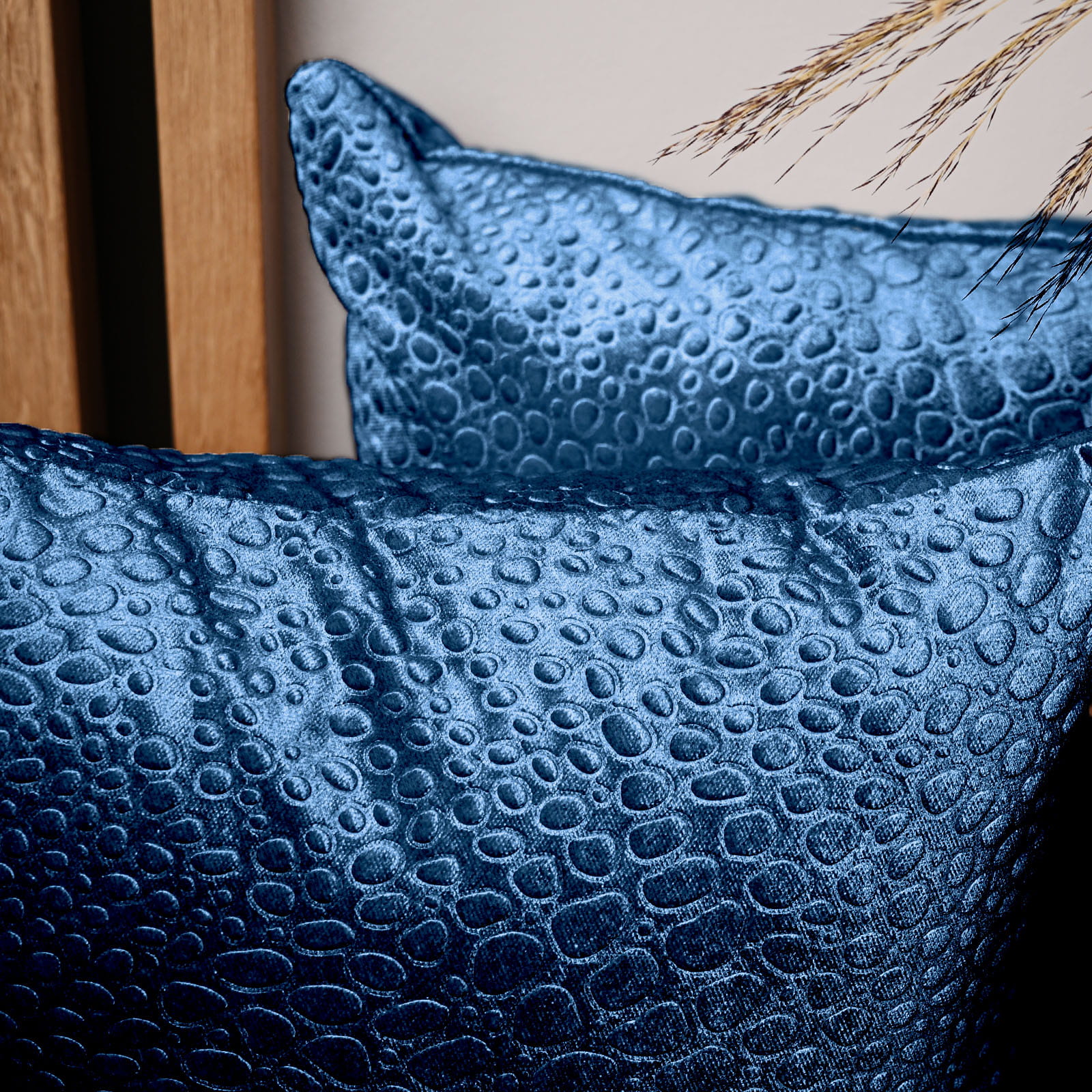 Dekoracyjna poszewka na poduszkę 45x45 cm w kolorze niebieskim z tkaniny welurowej z teksturą “kropelki"