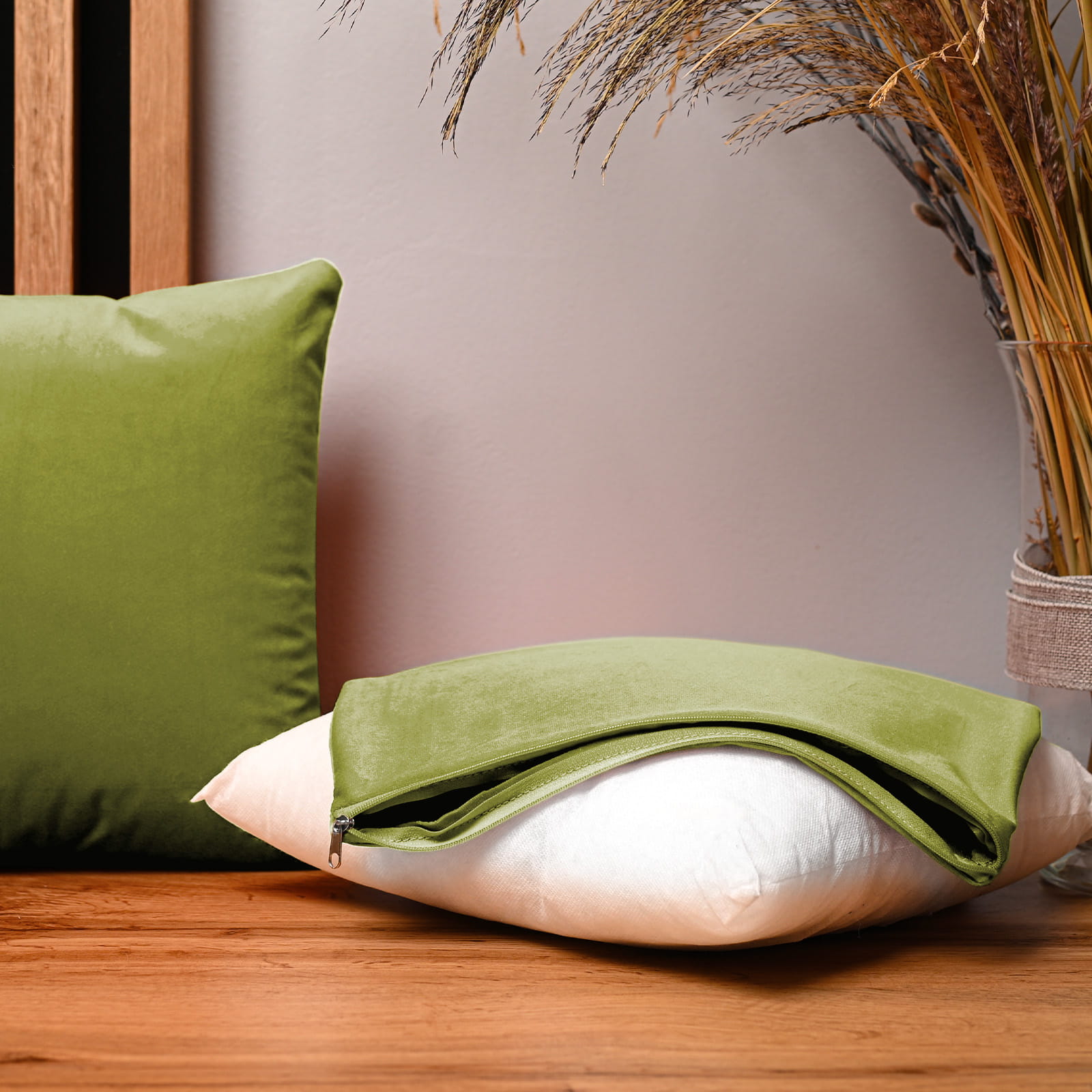 Dekoracyjna poszewka na poduszkę 45x45 cm w kolorze oliwkowym z tkaniny welurowej